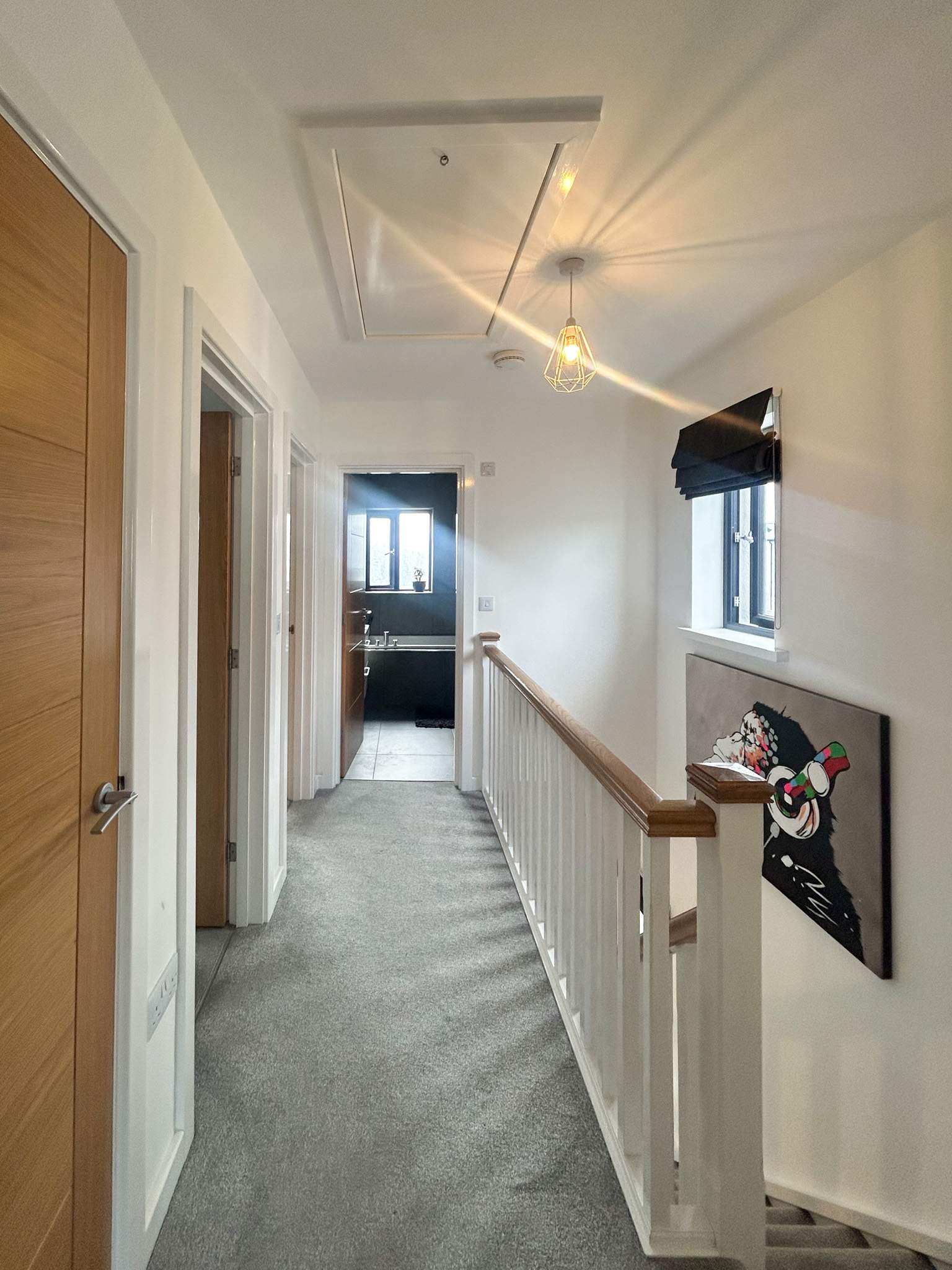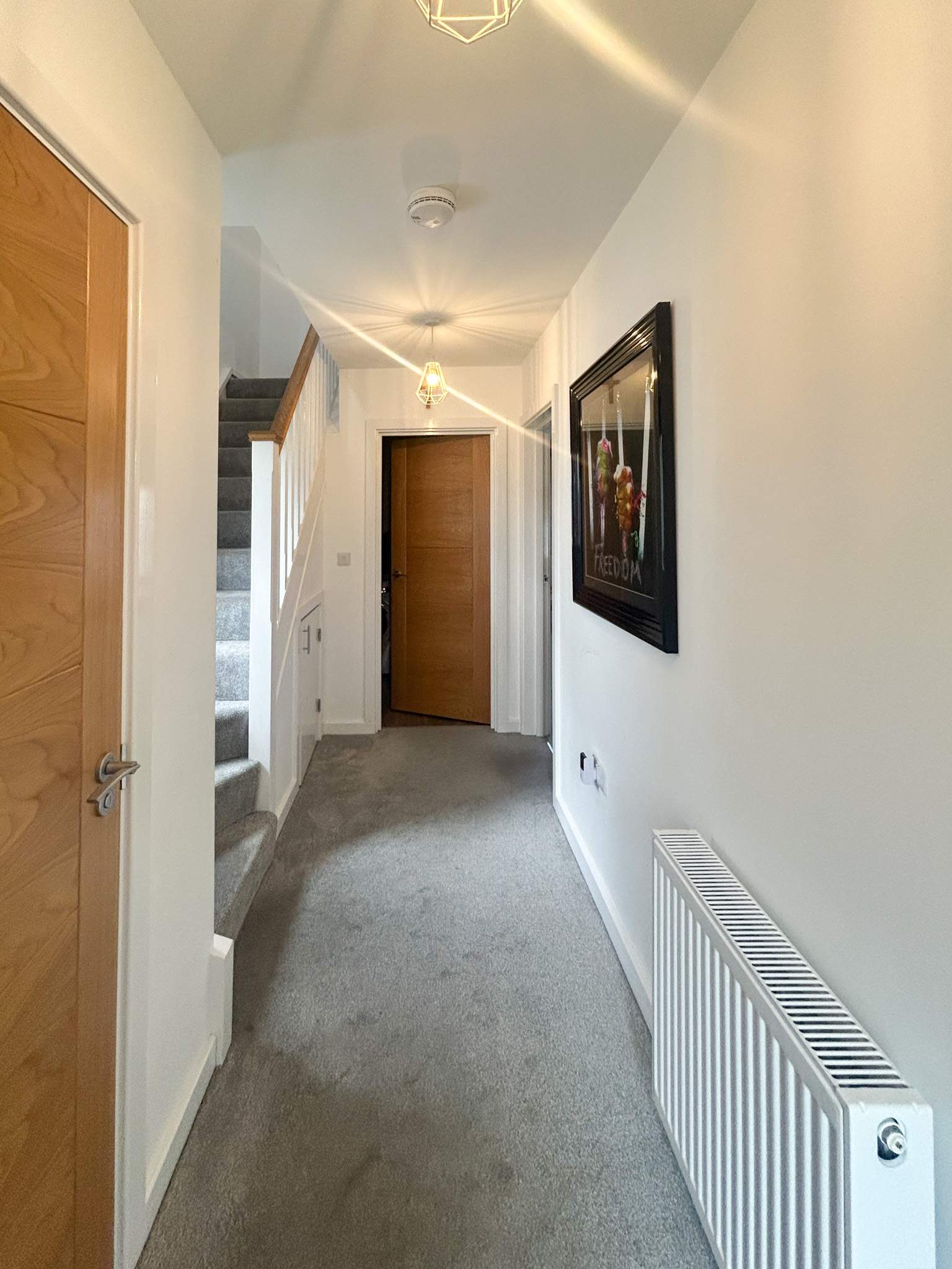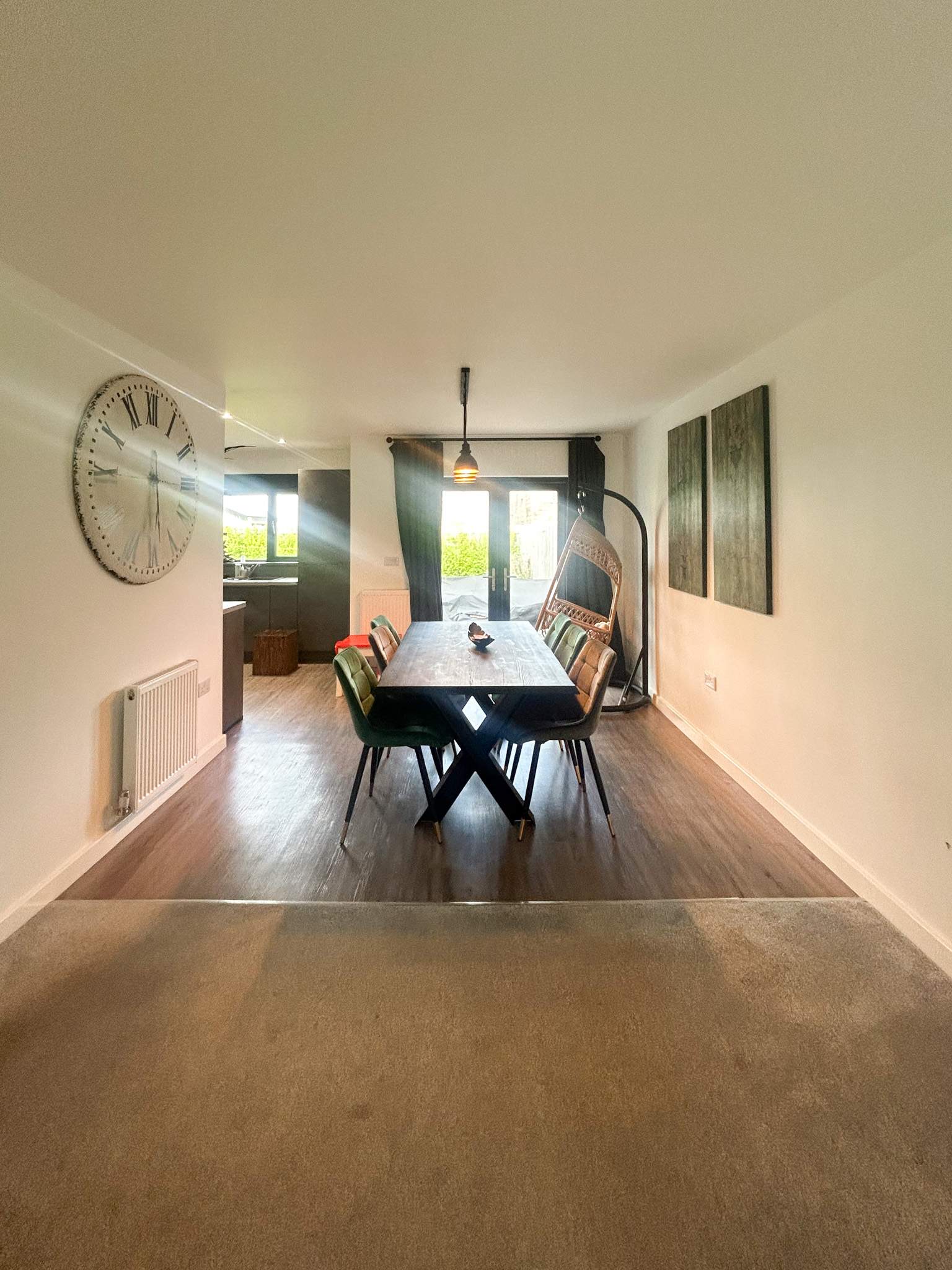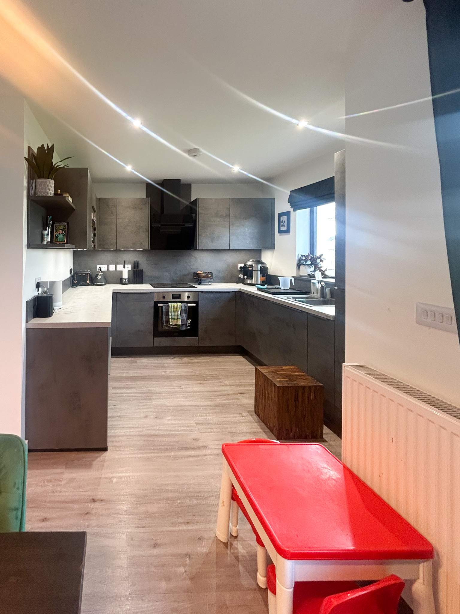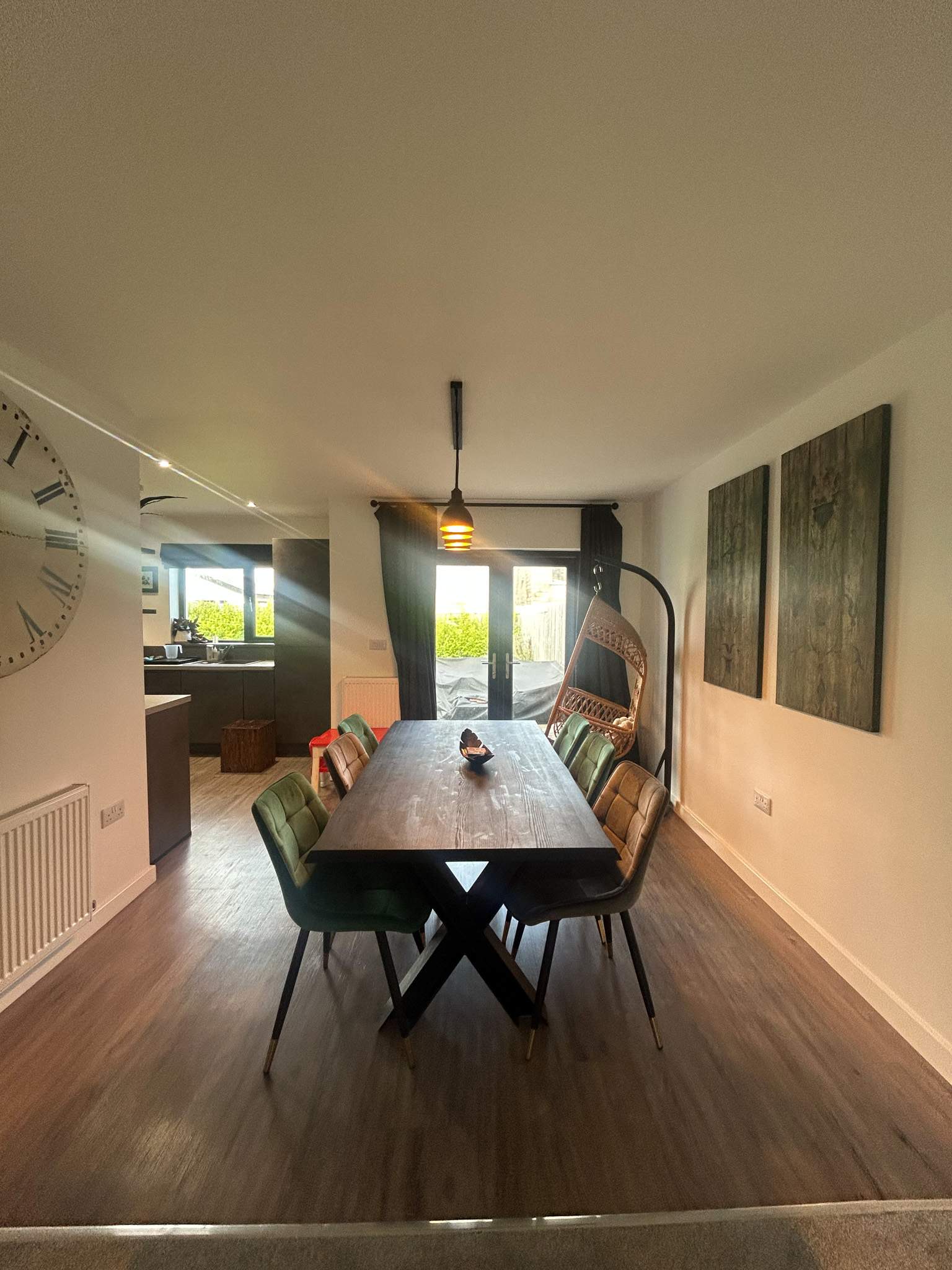 A charming three bedroom semi-detached family home Offered furnished Large open plan kitchen and lounge Separate utility Downstairs WC 4 piece bathroom suite with shower and bath Front and rear garden Available start of December Pets considered EV charging point No smokers