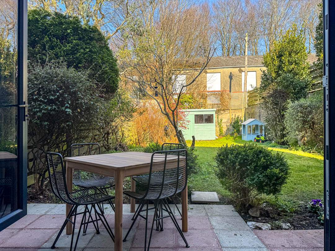 To the rear of the property there is a large lawned garden with a patio immediately off the living space. The garden is fenced to all sides with mature tree and shrub borders. A footpath down the side of the property with a gate provides access to the properties driveway.