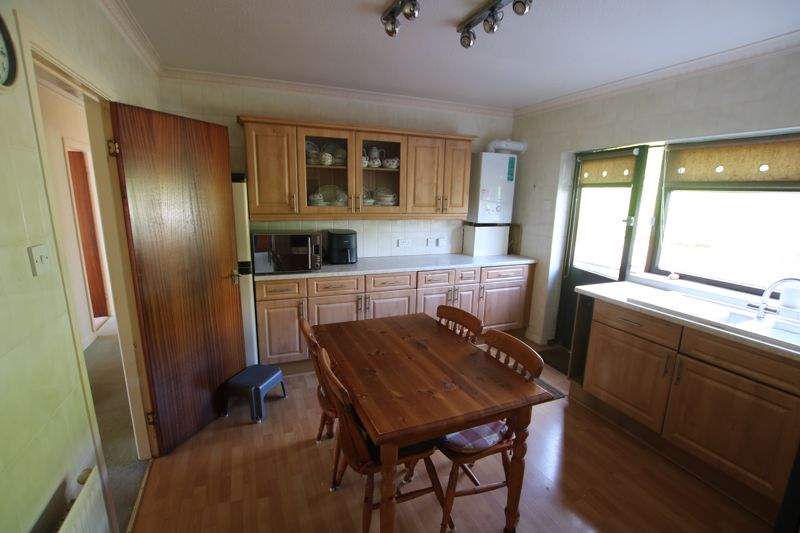 Well fitted kitchen comprising wall and base units with contrasting worktops comprising double oven, gas hob, white 1 1/2 bowl ceramic sink unit, space for fridge/freezer. Vaillant gas central heating boiler. Fully tiled walls. Door to rear garden.