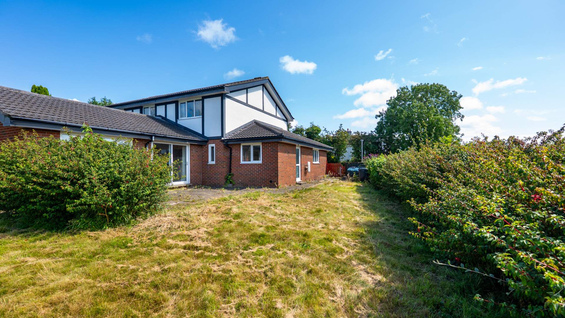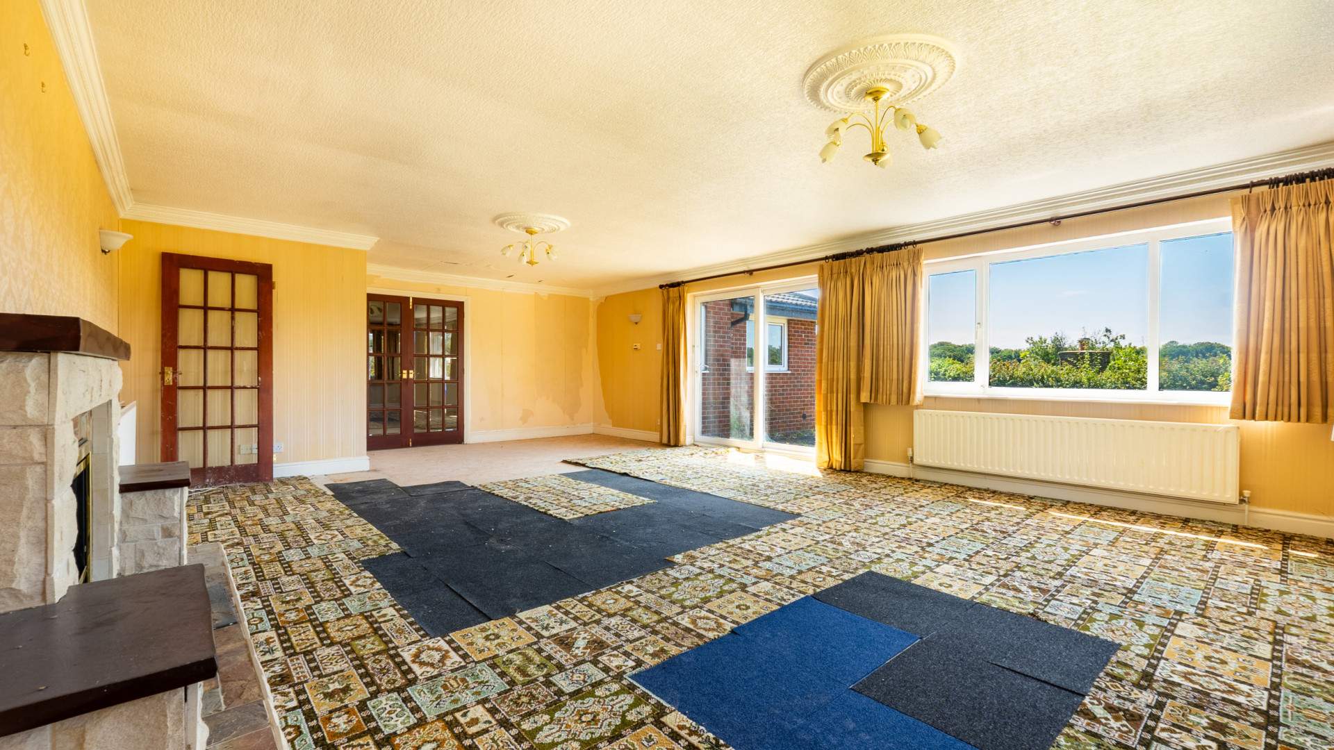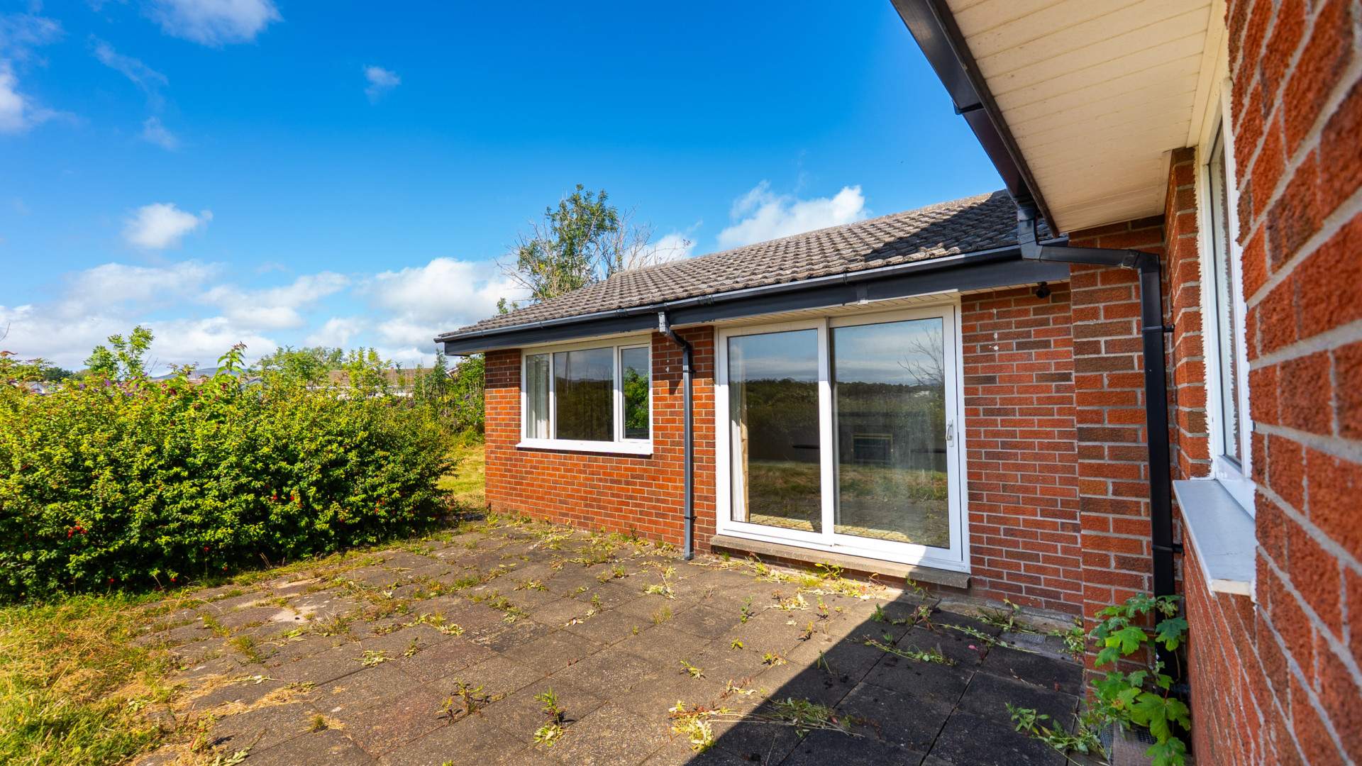 - Lounge (approx. 26’7 x 21’1): Set of sliding uPVC double glazed doors opening out onto the rear garden and a paved patio area.