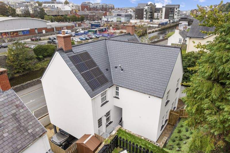 Introducing a stunning new build semi-detached townhouse, perfectly positioned with panoramic views of the River Glass. This idyll sits just a short stroll from Douglas Marina, where bars and restaurants await, while the bustling heart of Douglas— including Tesco superstore, shopping area of Strand Street and business district of Athol Street are within walking distance. Built to exacting standards with modern materials, this home delivers an exceptional level of specification, including enhanced thermal insulation for superior energy efficiency. Inside, you’ll find generous two-level living designed for family comfort. Off the entrance hall is a contemporary, well-appointed kitchen, cloakroom and Lounge. The second floor offers three generously proportioned bedrooms, one with an ensuite shower room and separate family bathroom. The property benefits from two covered private off-road parking spaces on the ground floor including a store room/utility room. There is also a low-maintenance rear courtyard. The property is offered for sale with no onward chain. Viewing highly recommended!
