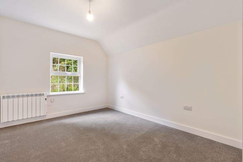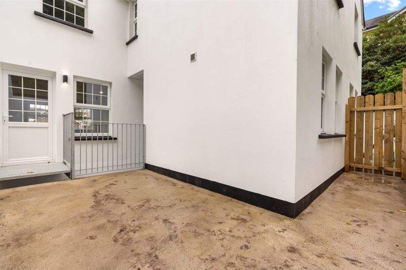 Rear courtyard. Astrofturf to lower garden area but boundary runs to the treeline.