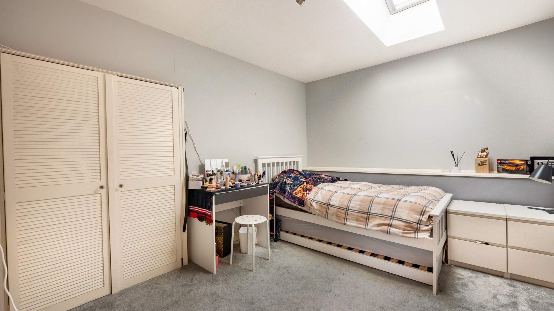 Built-in cupboard. Double glazed Velux skylight with a fitted blackout blind.