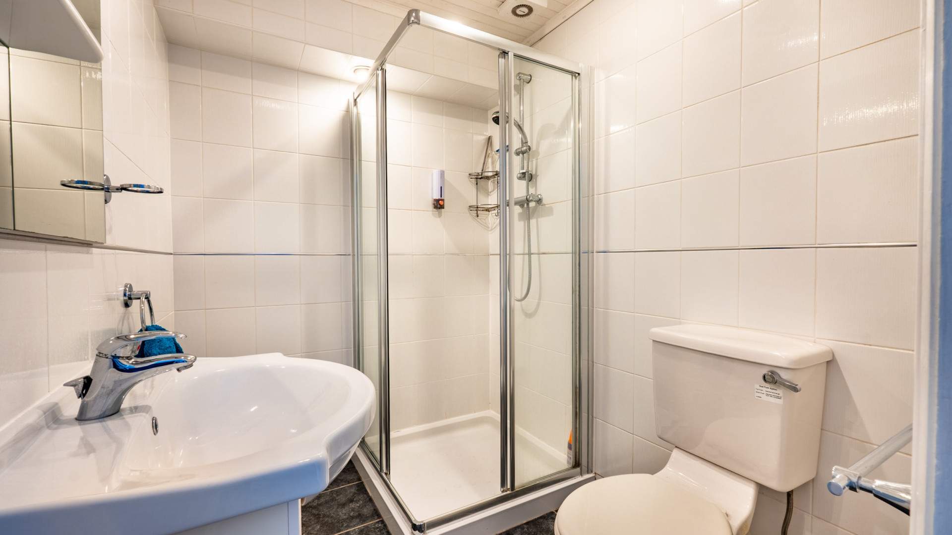 Fitted with a three piece suite comprising of a shower cubicle, wash hand basin and W.C.