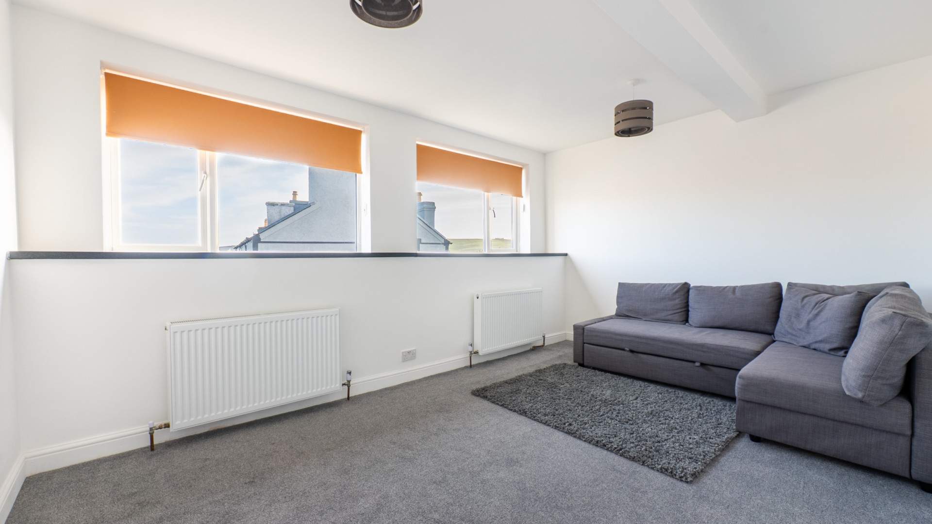 Two uPVC double glazed windows providing a distant sea view and hillside views over to Douglas Head.