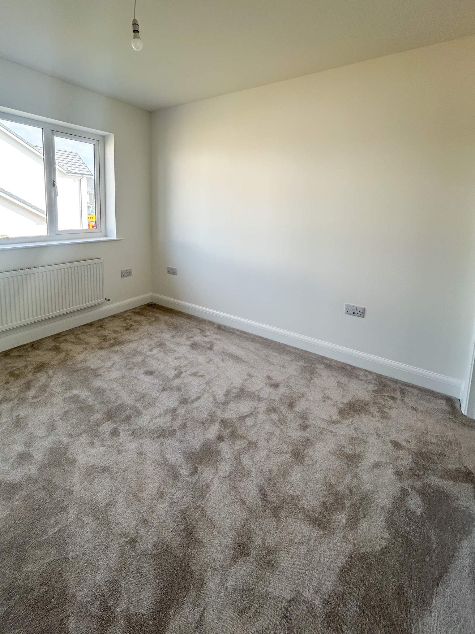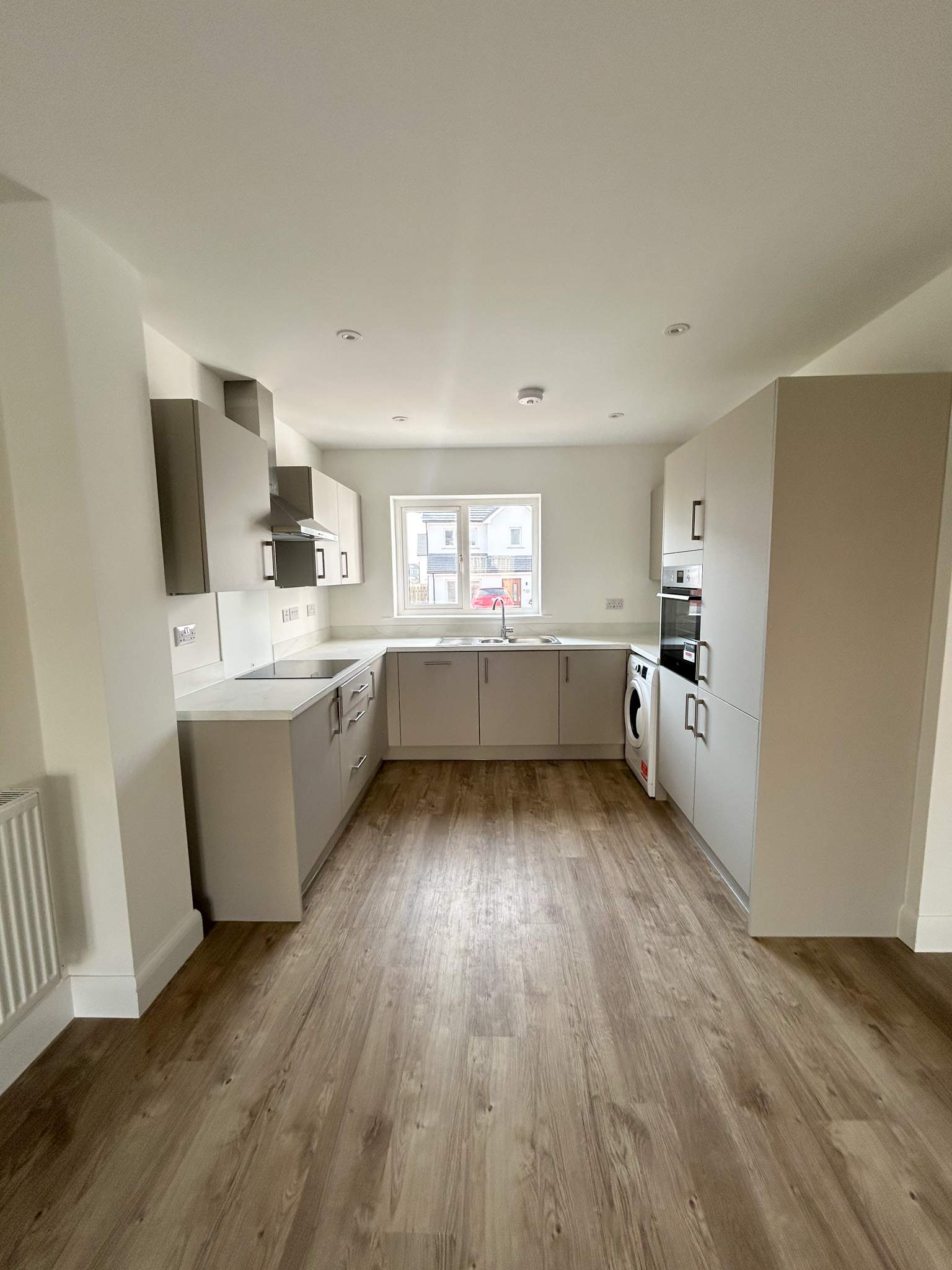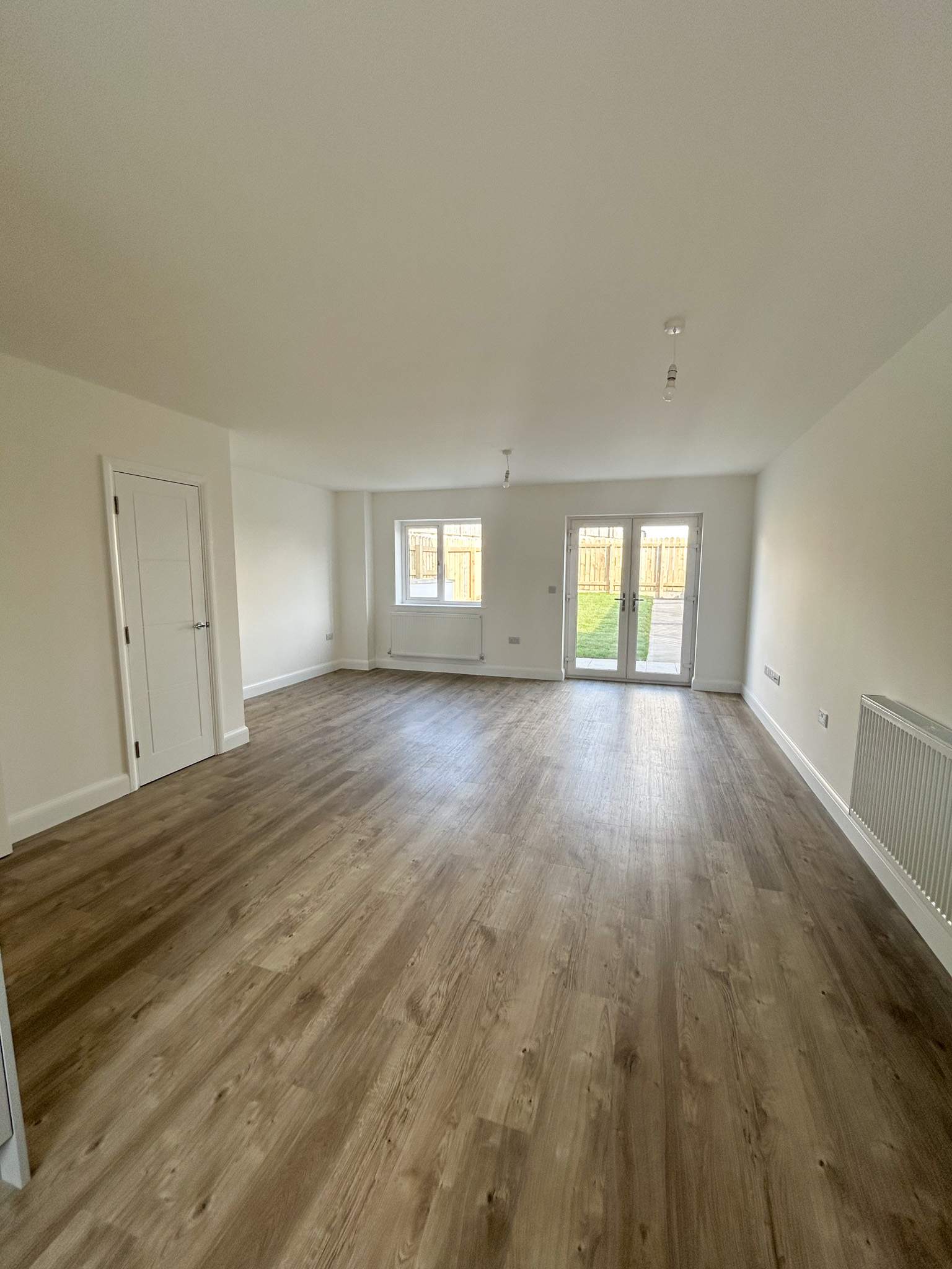 Newly constructed 3 bedroom house Open plan kitchen/dining/living area Separate Utility room Ground floor W/C Lawned rear garden 3 Double bedrooms, 1 with built-in wardrobes and en-suite Family bathroom 2 Off-road parking spots No pets/smokers/sharers Available Now