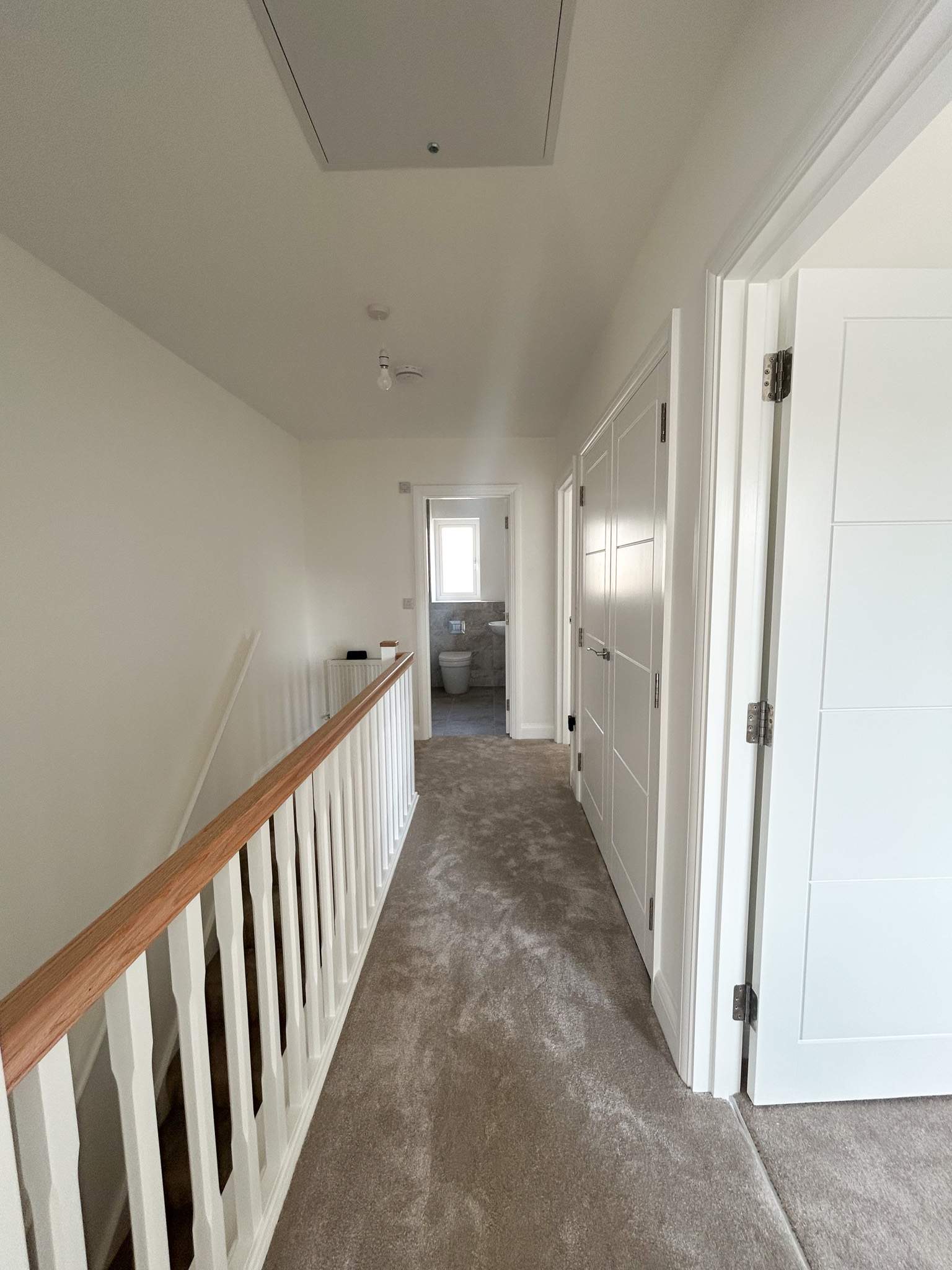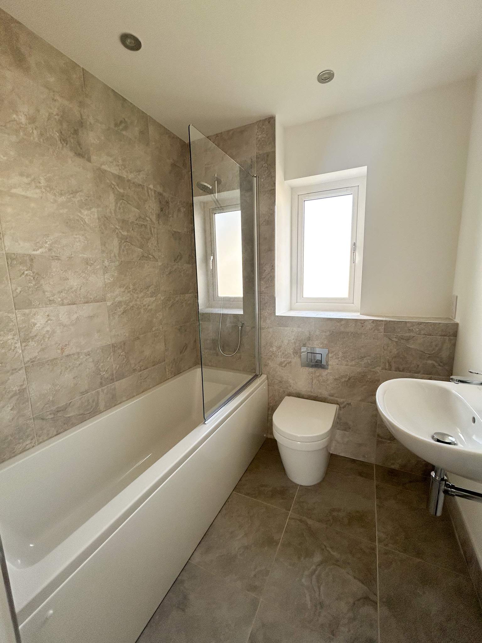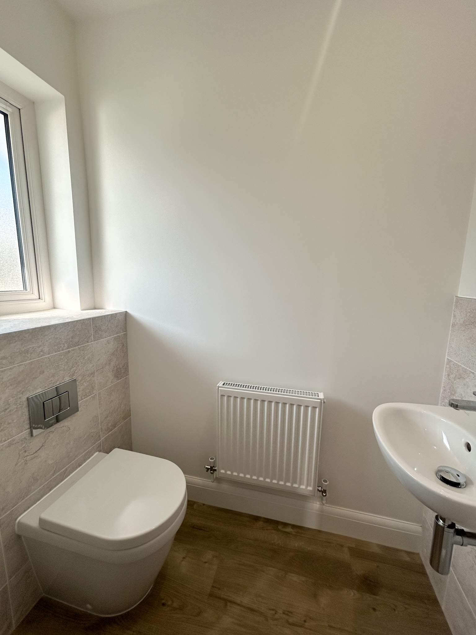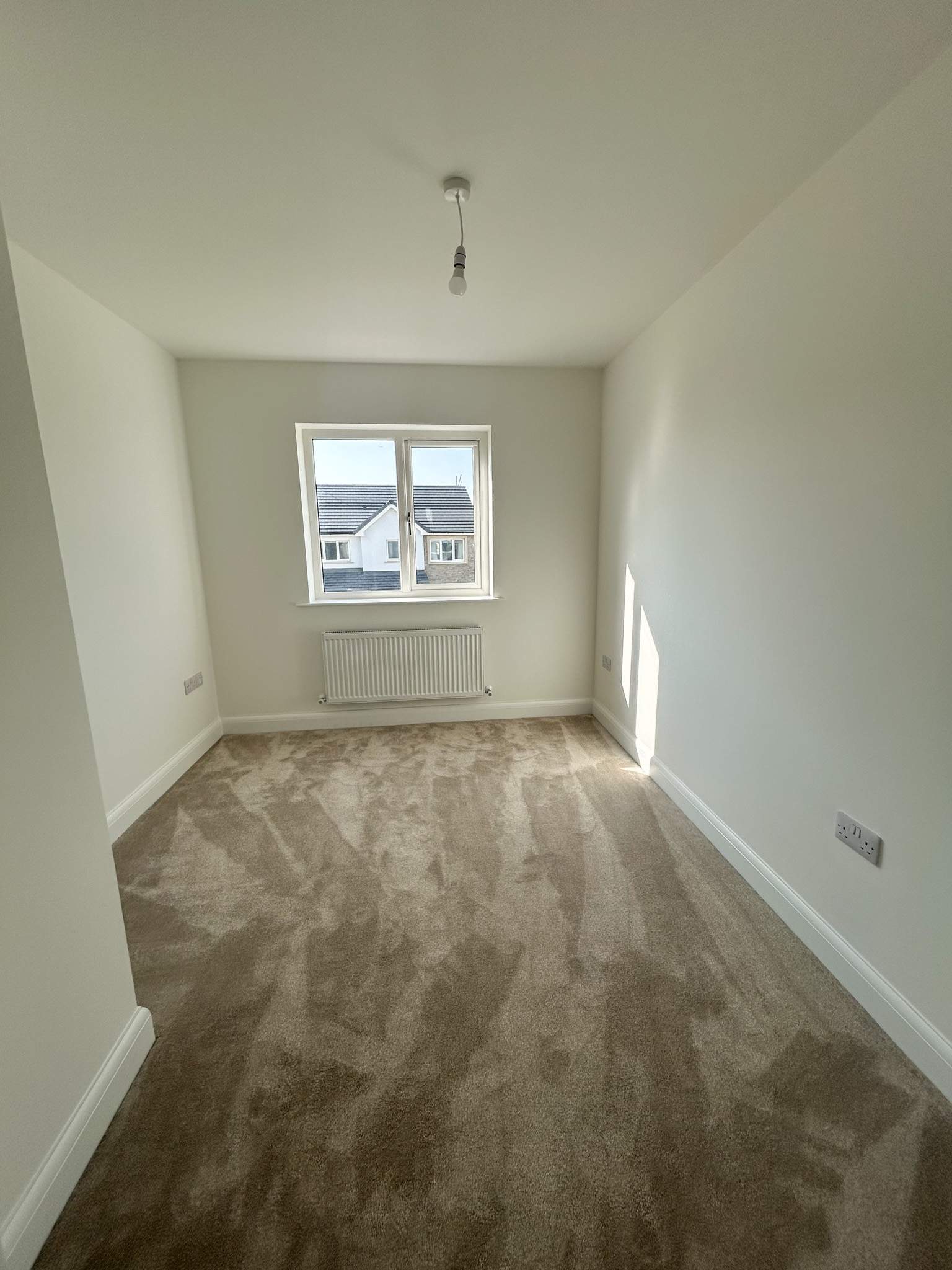 Newly constructed 3 bedroom house Open plan kitchen/dining/living area Separate Utility room Ground floor W/C Lawned rear garden 3 Double bedrooms, 1 with built-in wardrobes and en-suite Family bathroom 2 Off-road parking spots No pets/smokers/sharers Available Now