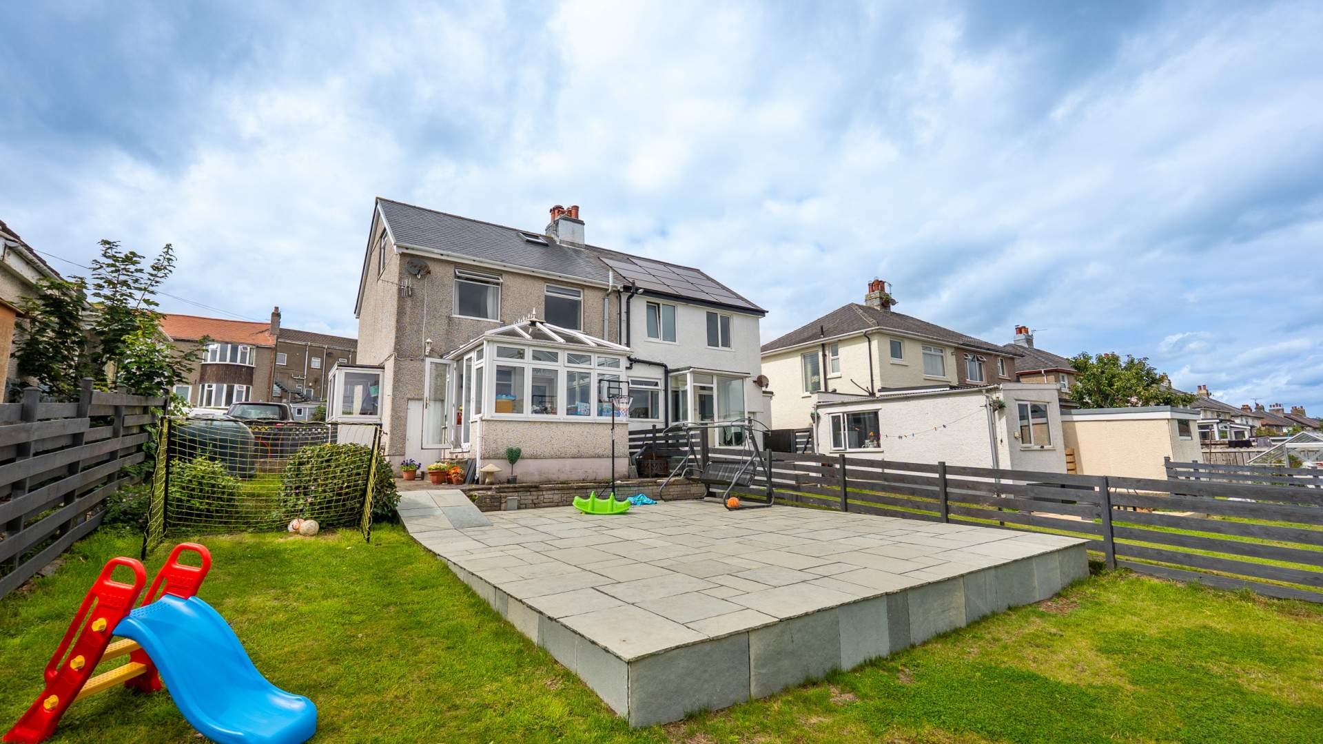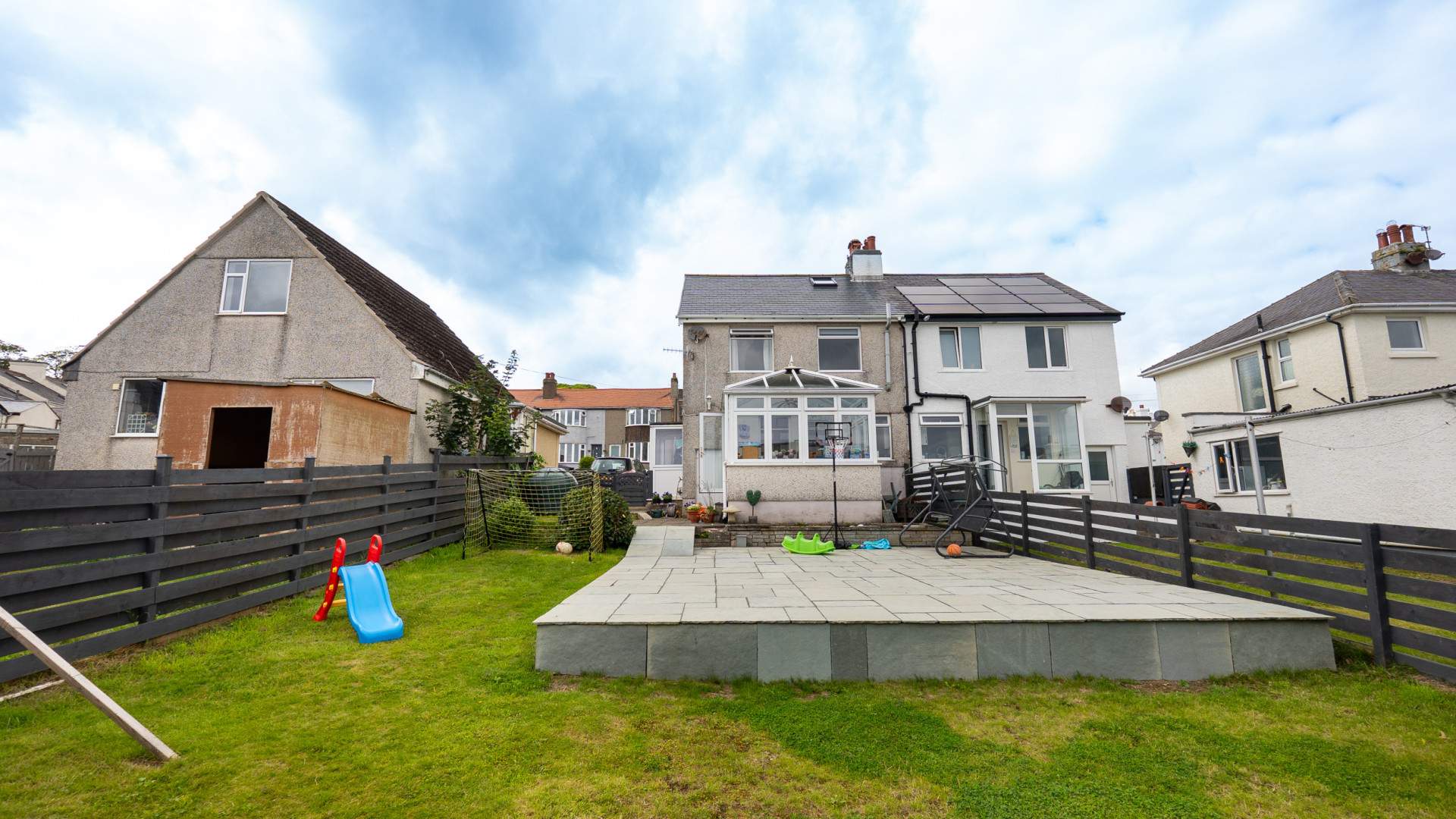To the rear of the property there is a good size lawned garden with a large raised patio area, perfect for summer entertaining. Fenced boundaries. Oil bulk storage tank.
