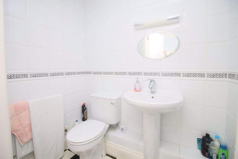 WC. Pedestal wash hand basin. Coved ceiling. Downlighters. Radiator. Extractor Fan.