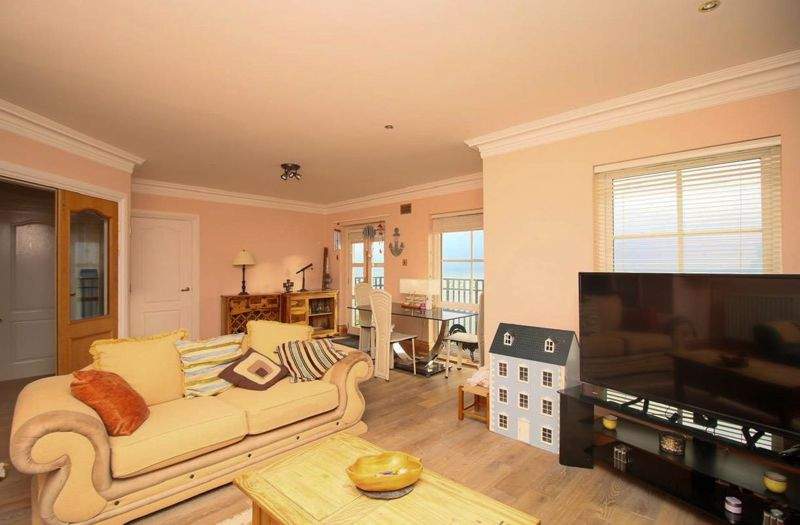 Laminate flooring. 2 x Radiators. Coved Ceiling. TV and telephone points. Multiple plug sockets. Down lighters. French doors opening to a large south westerly facing balcony with spectacular views over Douglas and bay beyond.