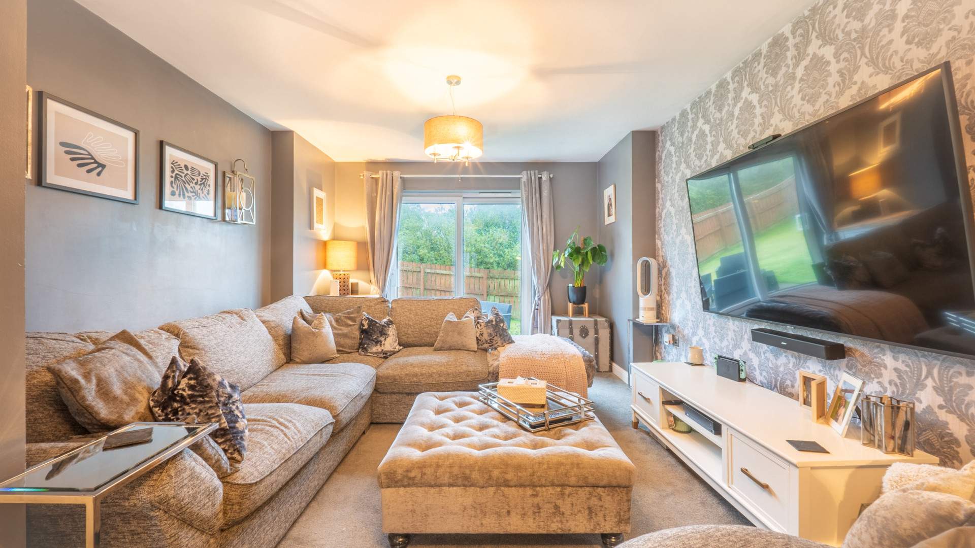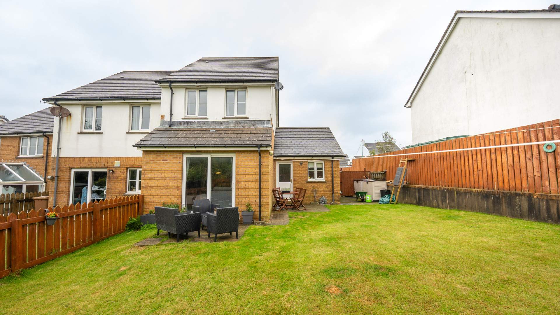 To the rear of the property there is a good size lawned rear garden with a patio area and fenced boundaries.