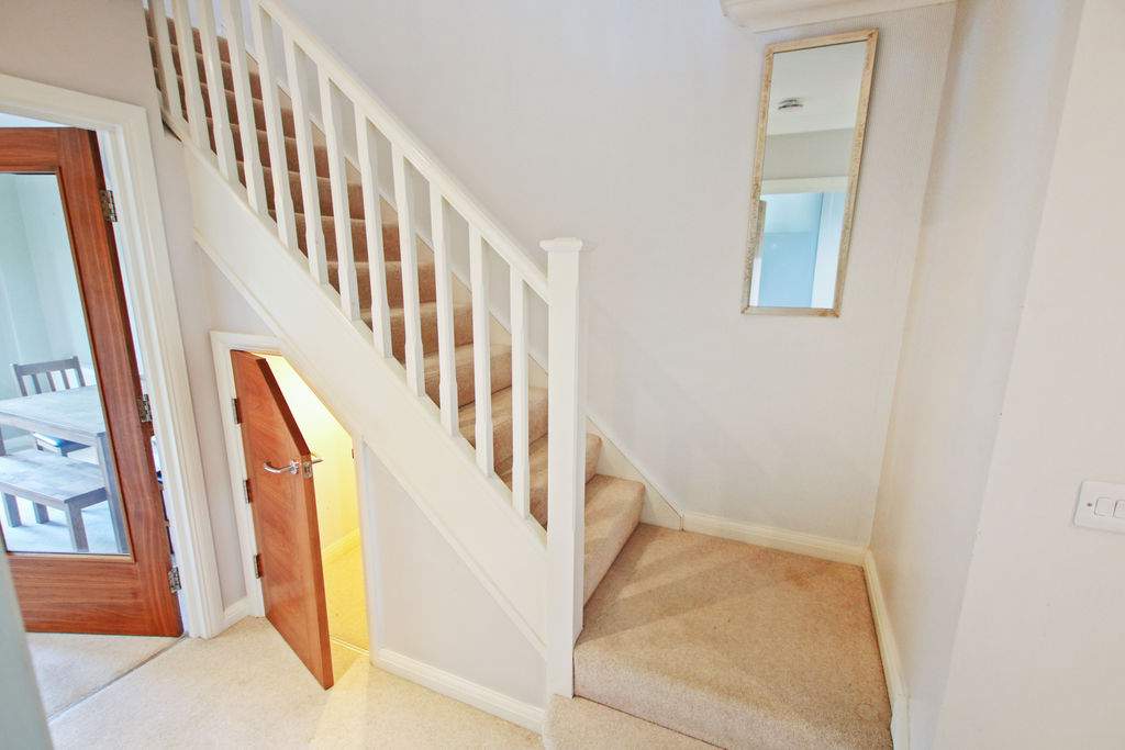 Light and airy welcoming hallway. Staircase leading to first floor. Good sized understairs storage with light.