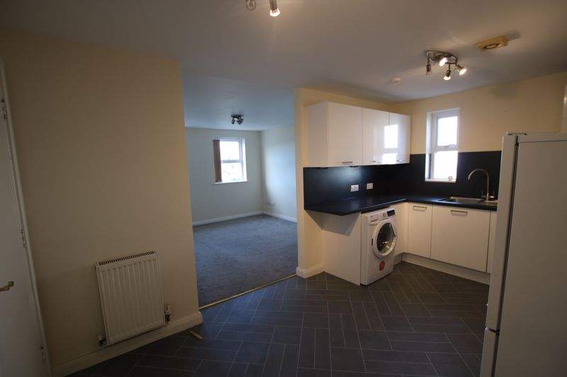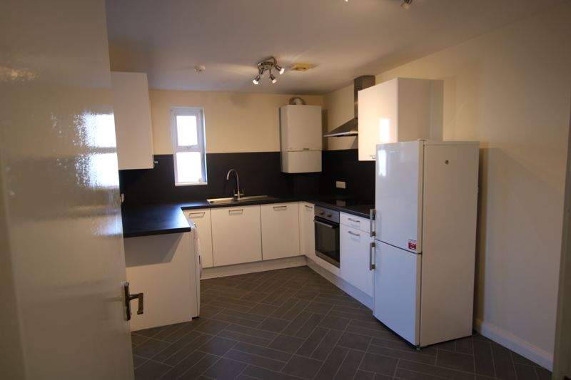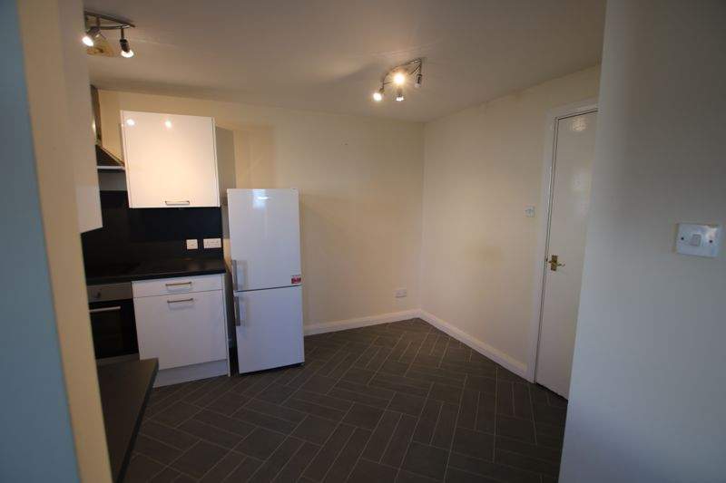 Well fitted dining kitchen with a good range of white fronted wall and base units with contrasting worktops incorporating electric oven, ceramic hob, stainless steel sink unit, cooker hood, fridge/freezer, plumbed for washing machine. Laminate flooring, spotlights. Gas central heating boiler. Opening to: