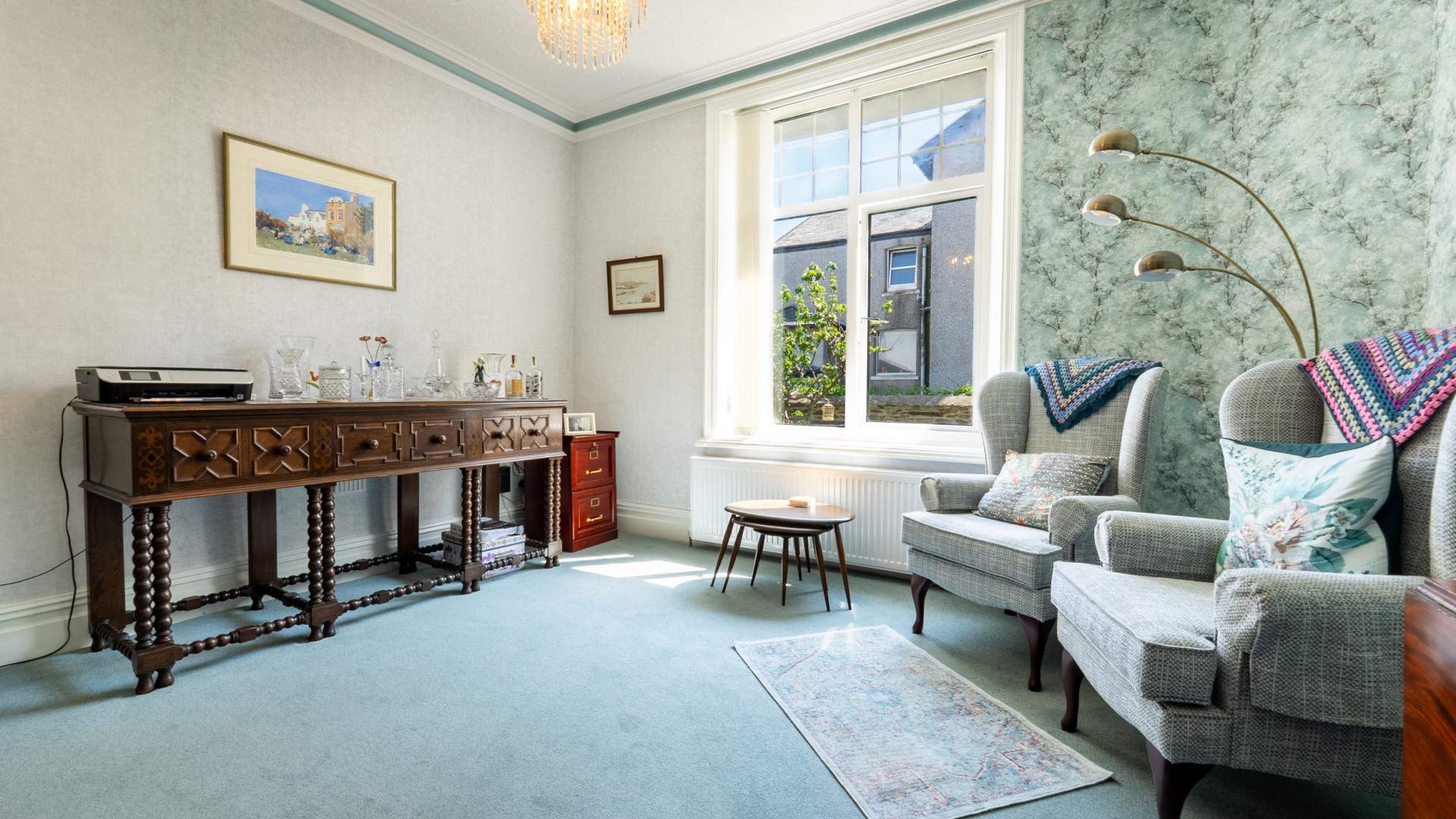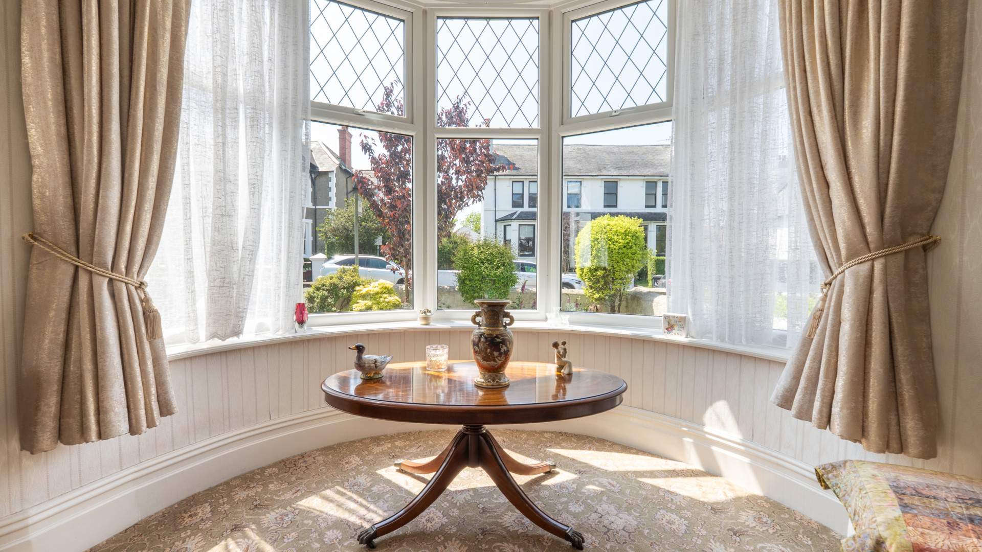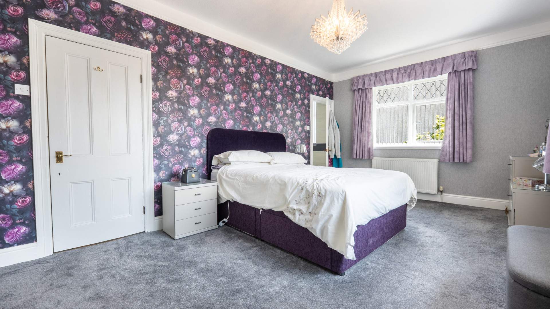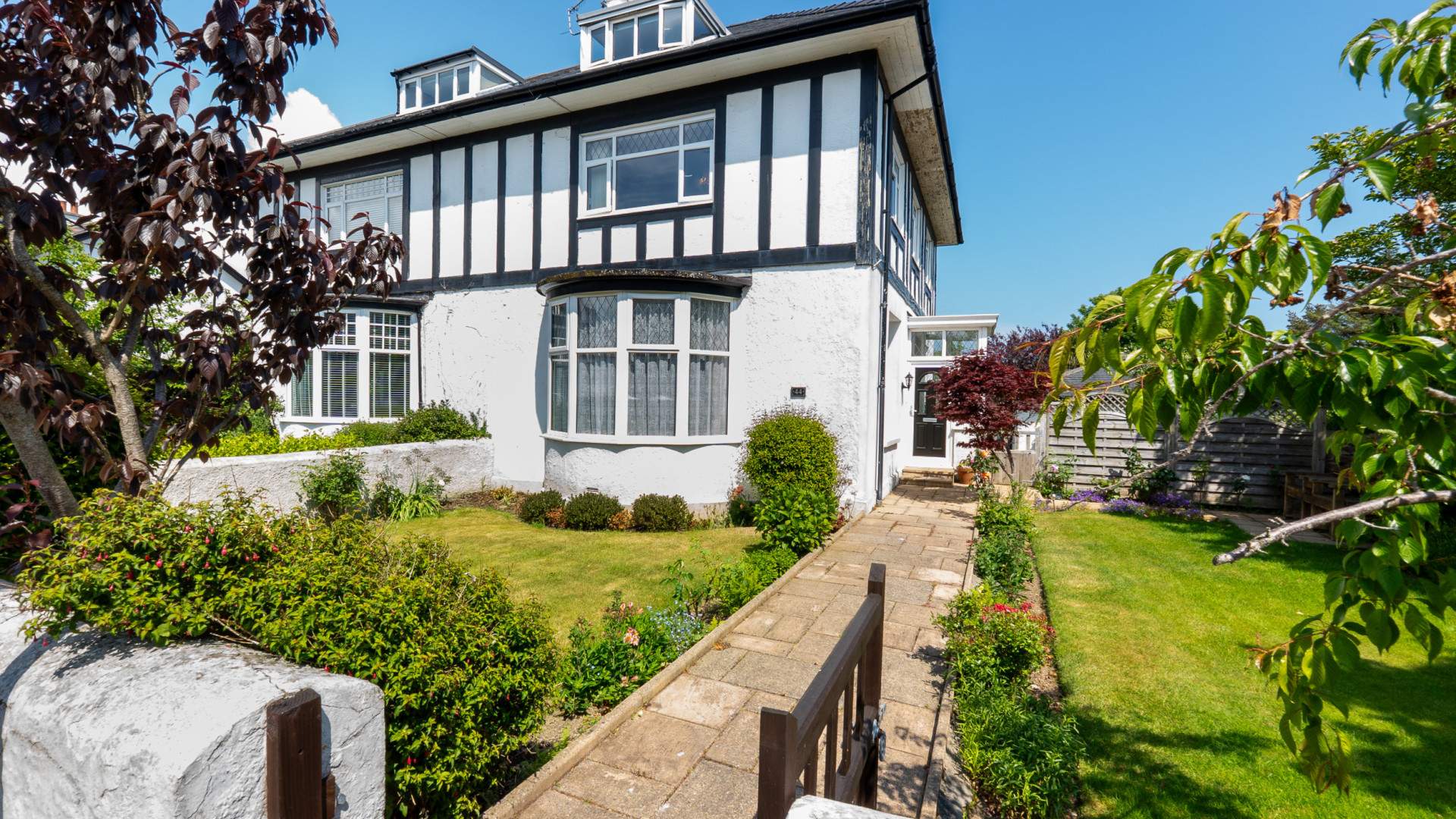To the front of the property there are two immaculately maintained lawned garden areas with dwarfed walled boundaries and multiple mature shrubs, separated by a footpath leading to the front door. Gated access to the rear.