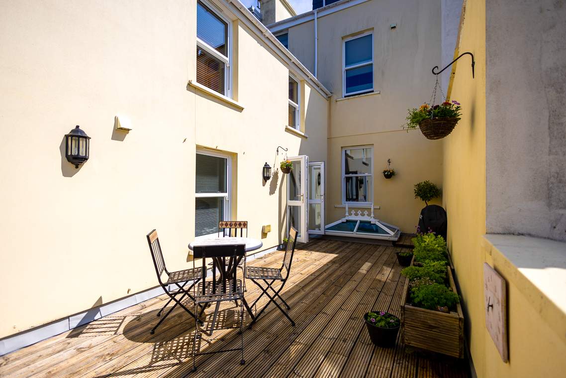 - Outdoor west-facing decked entertainment terrace accessible via French doors from landing