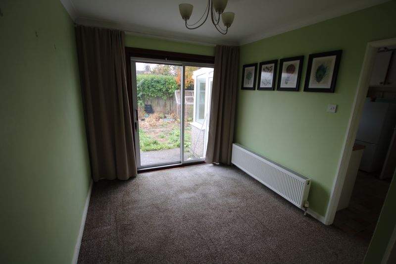 Generous sized room with large front picture window. Tiled fireplace. Double glazed doors to: