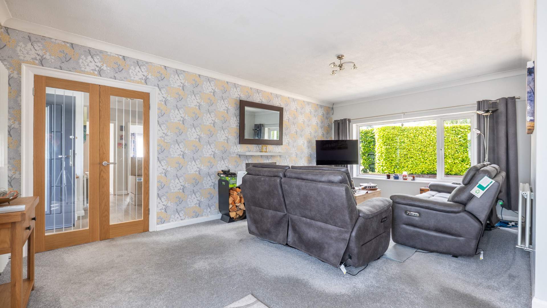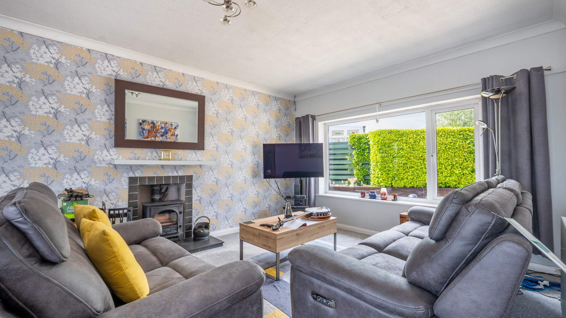 Feature multi-fuel burning stove. Two dual aspect uPVC double glazed windows overlooking both the front and rear gardens. Space for a dining table.