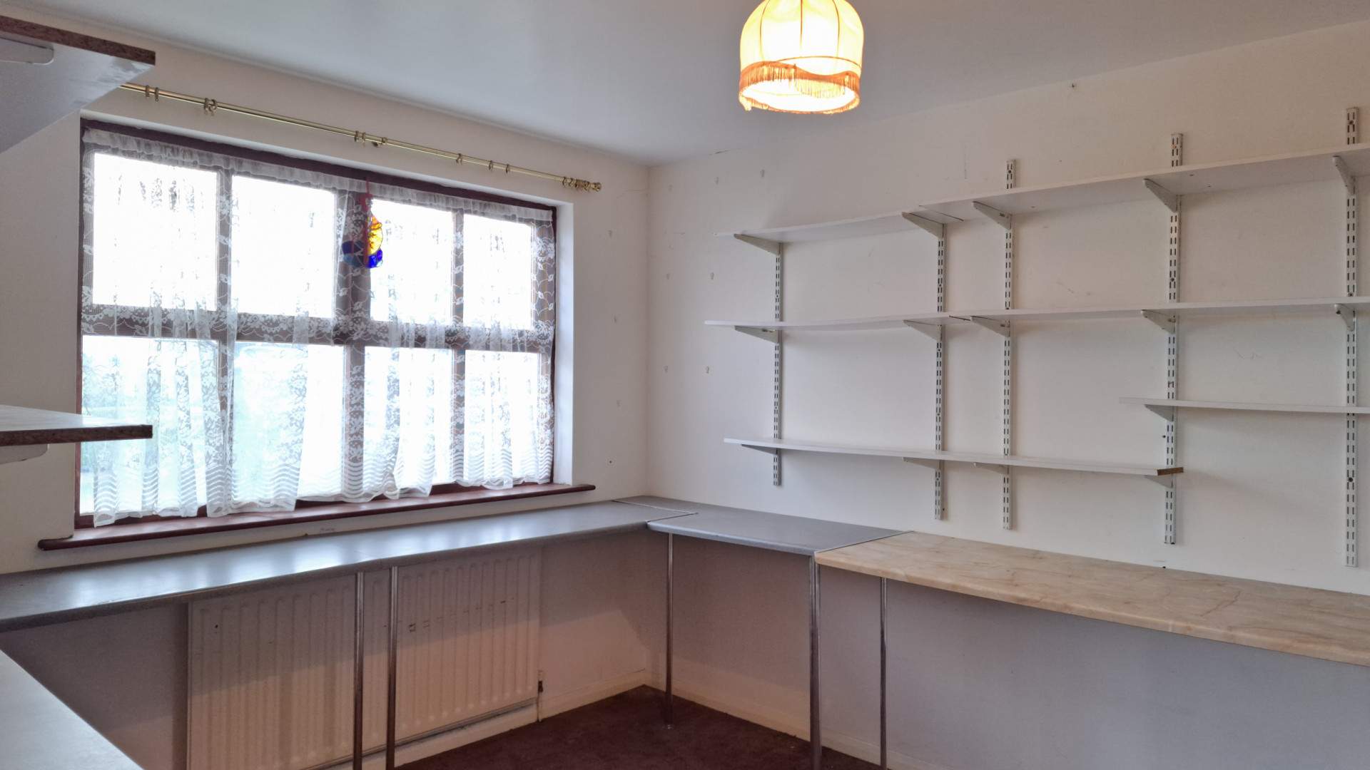 Located at the rear of the property with two wooden double-glazed windows with views on to the rear and side aspect. The L shaped lounge has a cupboard with shelving on your left when entering from the kitchen. There is a further door in the cupboard which provides further storage positioned under the staircase. At the far end of the lounge is a double-glazed sliding door providing access to the conservatory. The lounge has two ceiling lights and is finished with carpeted flooring.