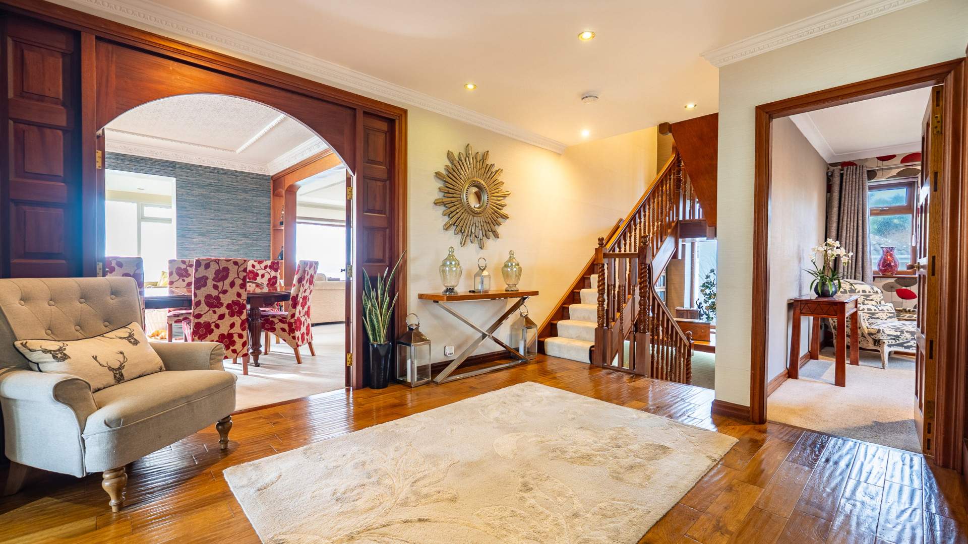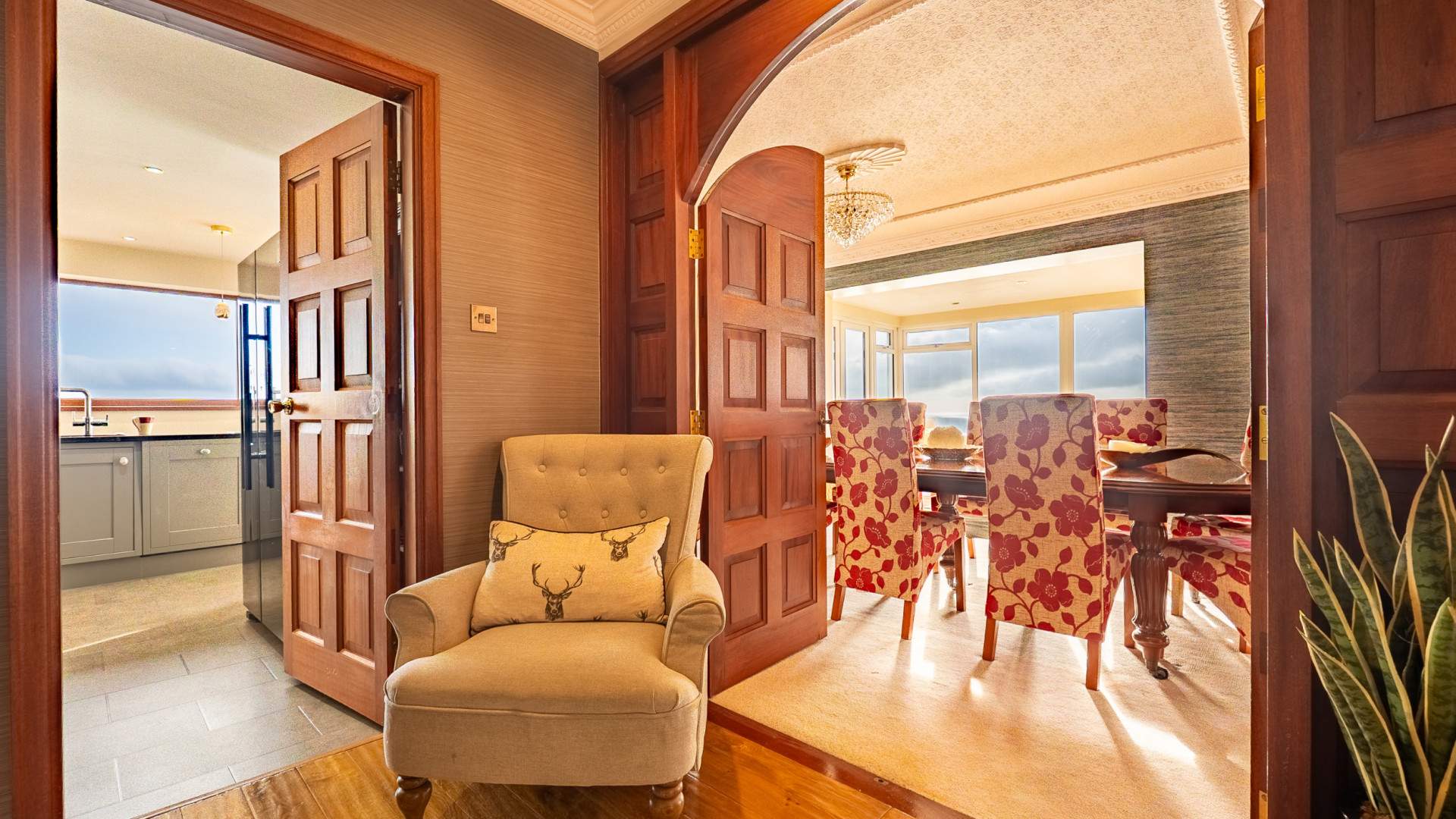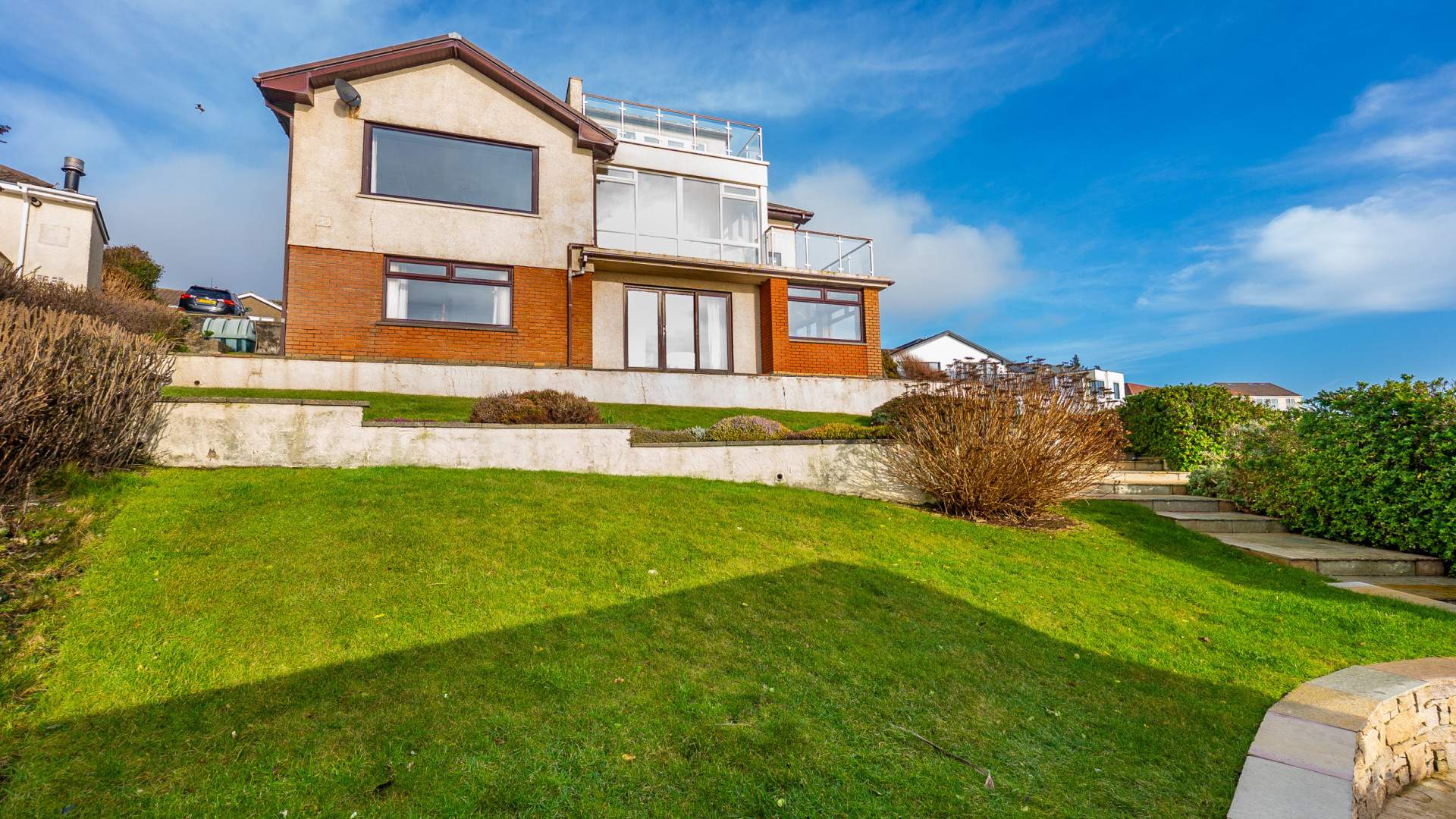 This impressive detached 5 bedroom, 5 bathroom home combines refined elegance with superb functionality, making it ideal for families or those seeking a refined coastal retreat. Positioned in one of the Isle of Man’s most desirable locations, the property enjoys panoramic views across the coastline, visible from multiple rooms and the stunning roof terrace.