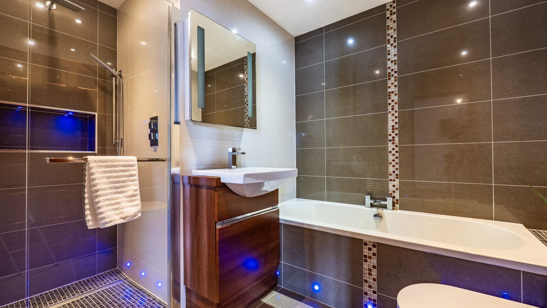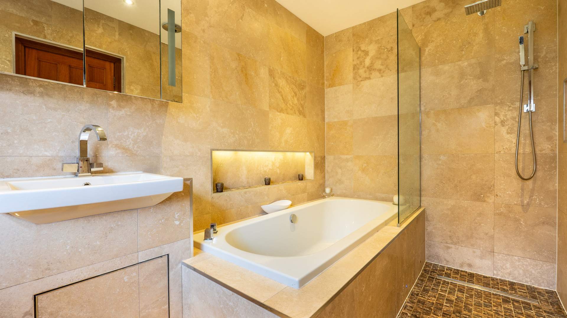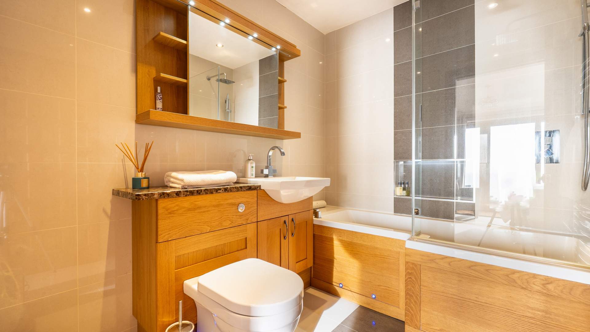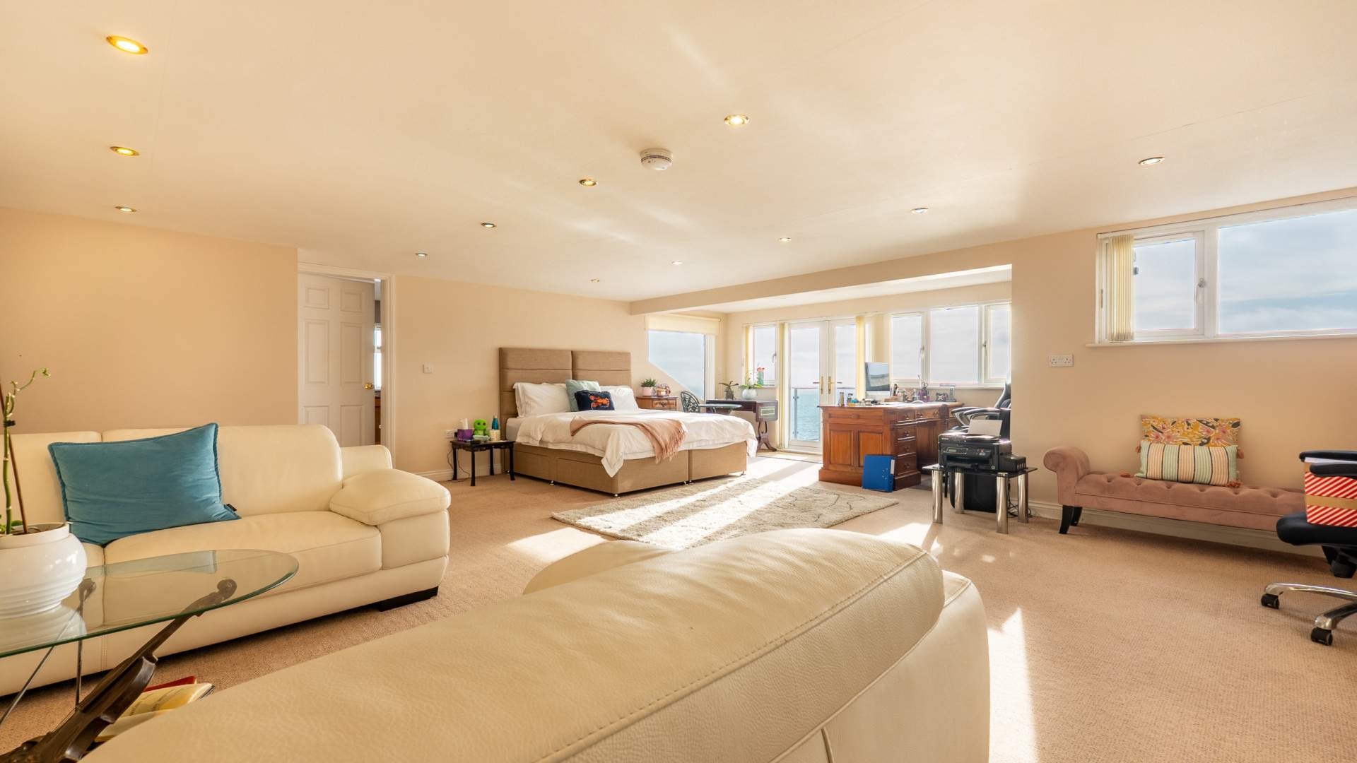 The accommodation is generously proportioned throughout, featuring bright, open‑plan living areas and high‑quality finishes. Each bedroom benefits from its own bathroom, providing privacy and comfort for family and guests alike.