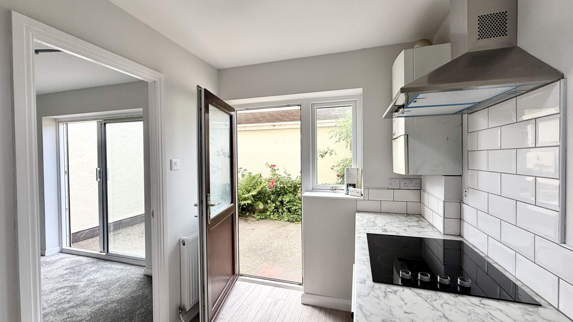 A bright and spacious lounge with easy access onto the rear patio area through a set of double glazed aluminium sliding doors. A further door provides access to the kitchen of the property, the lounge has a centre ceiling light and is finished with carpeted flooring.