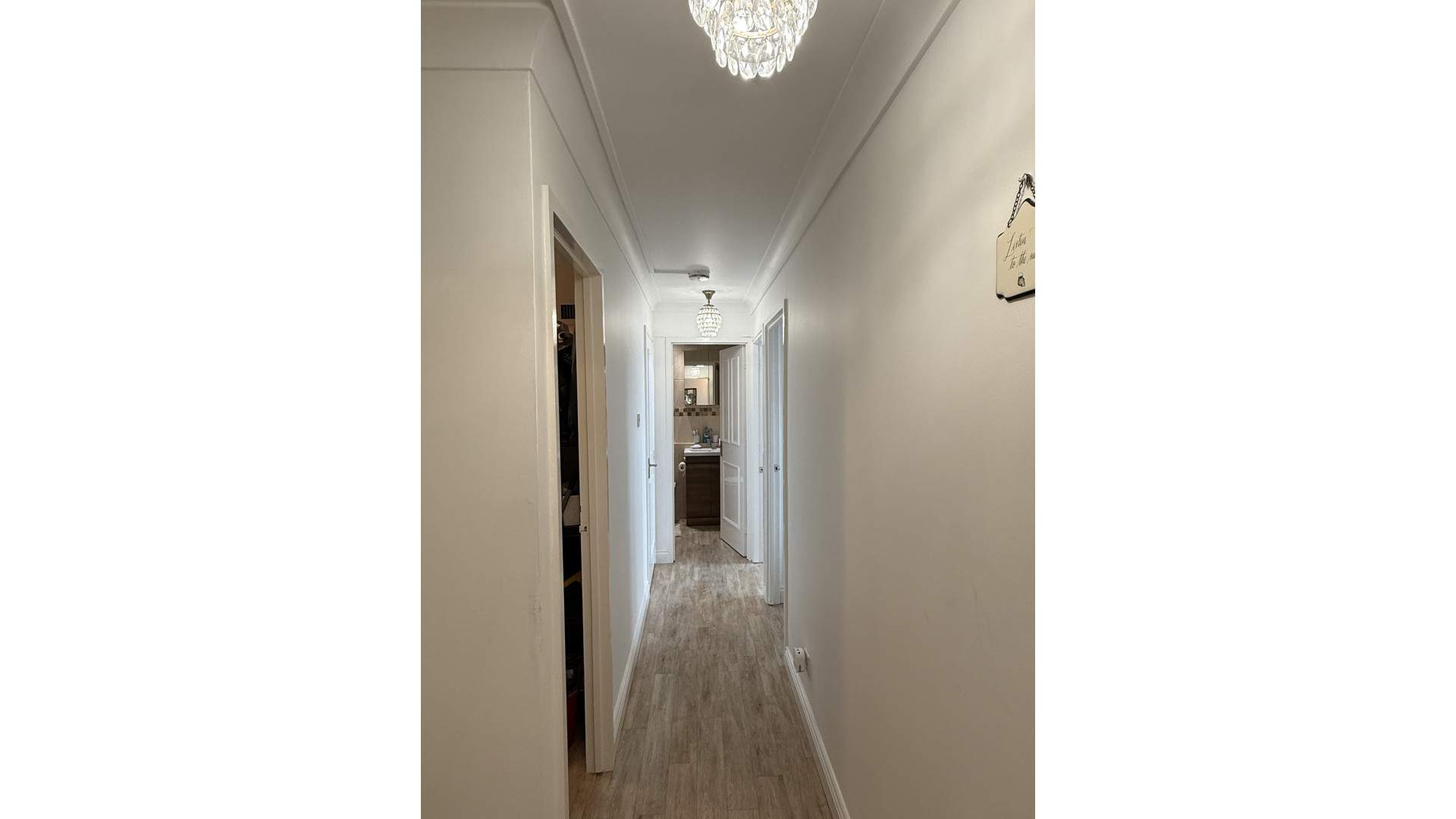 First cupboard on the left is used as a utility room. Space for a standalone washing machine and separate tumble dryer. Ceiling light, wood effect vinyl flooring throughout.
