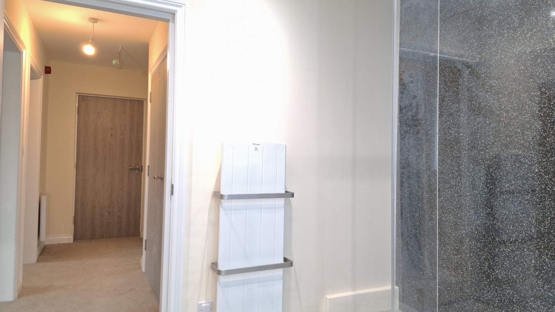 The hallway has the entry intercom system and a large storage cupboard on your left hand side located next to the bathroom.