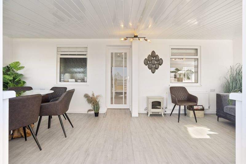 The property is accessed via stone pillars with driveway leading to the property. Detached garage and store shed. Extensive concrete hardstanding and parking for multiple vehicles. Grassed lawns with hedges to boundary. Large paved patio off sunroom.