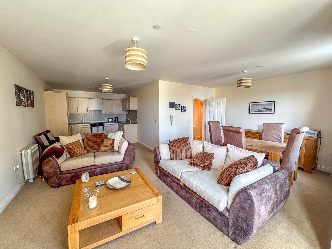 Well presented second floor purpose built apartment in Griffin House, Douglas Telecom Entry System, stairs and lift to all floors Open plan Lounge Diner Kitchen Area with integrated appliances 2 double Bedrooms, Separate WC and modern Bathroom Sea views from Bedroom 1 and Living Room 2 Large Storage Cupboards plus...