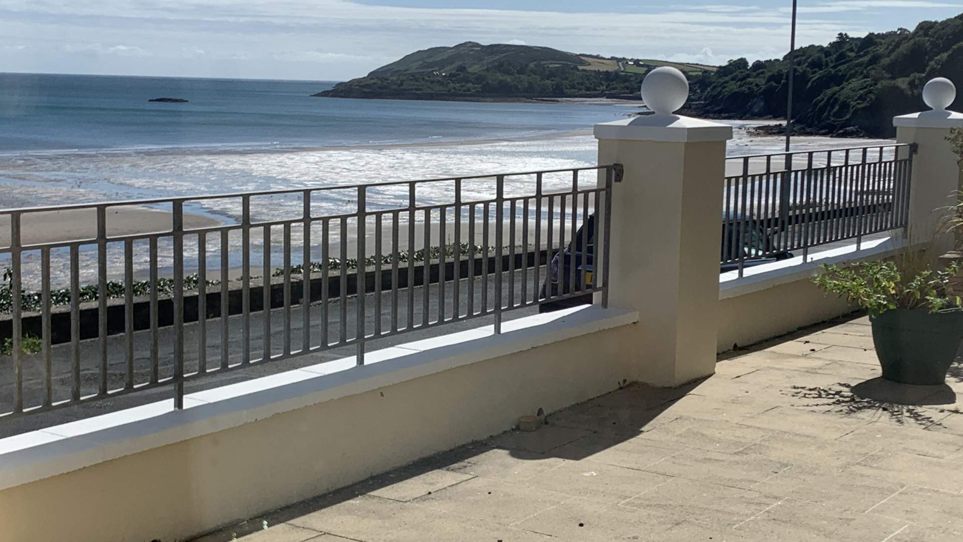A very large, fully enclosed terrace safe for dogs and children with raised beds, outside electrical point and water supply.
