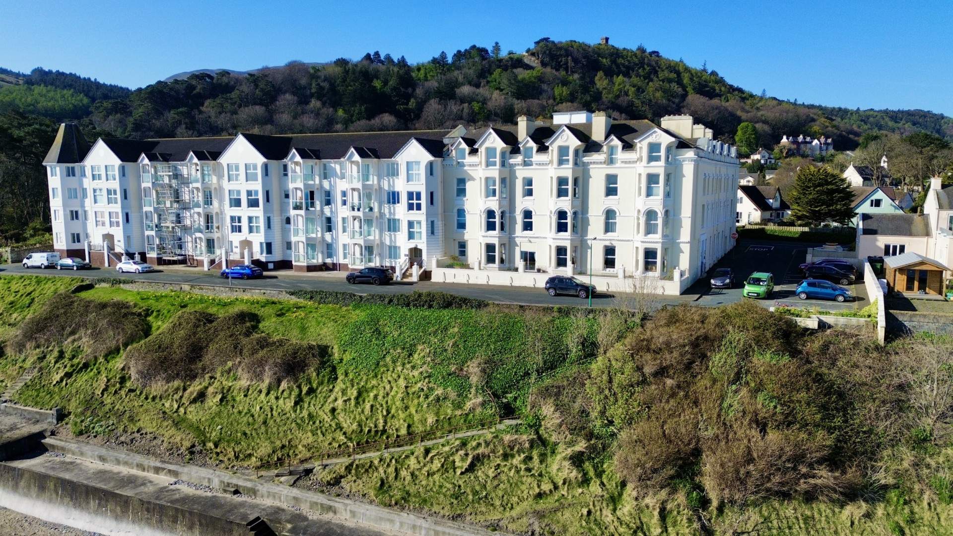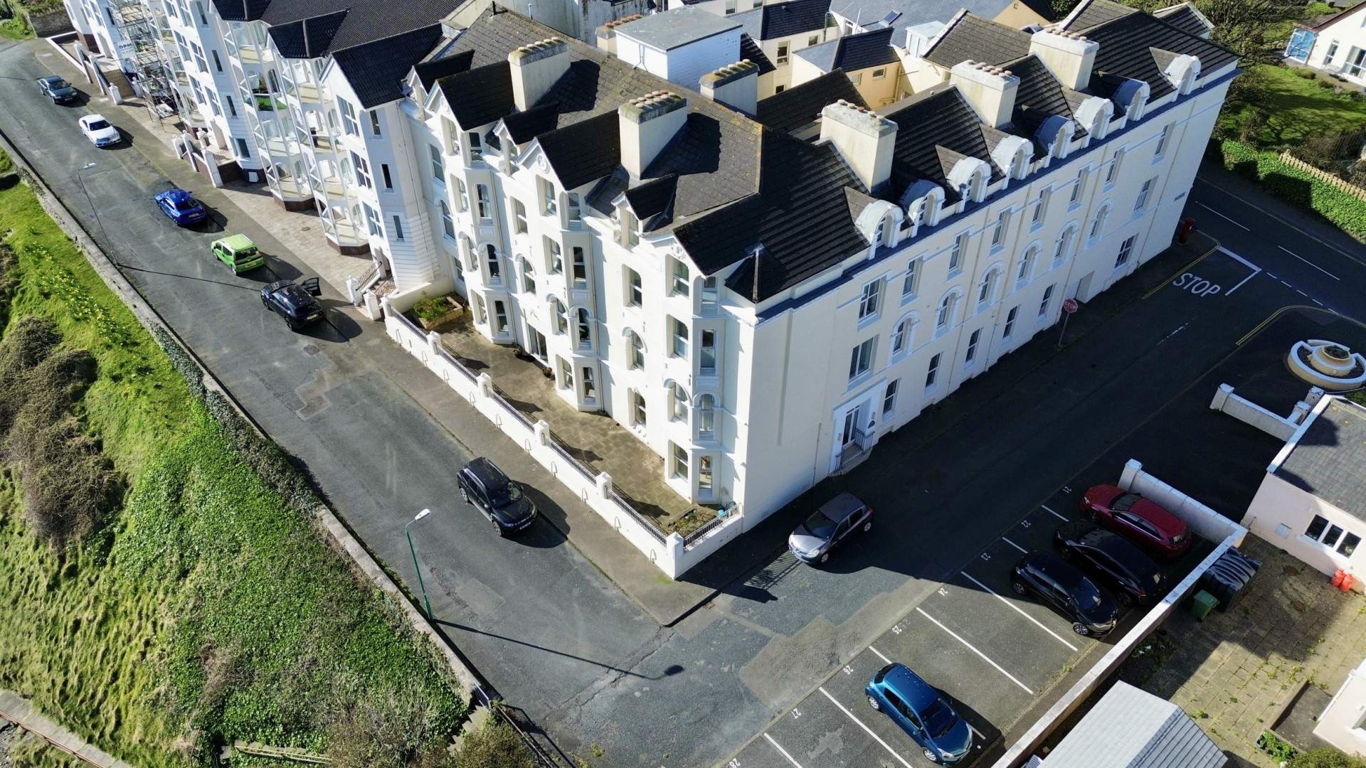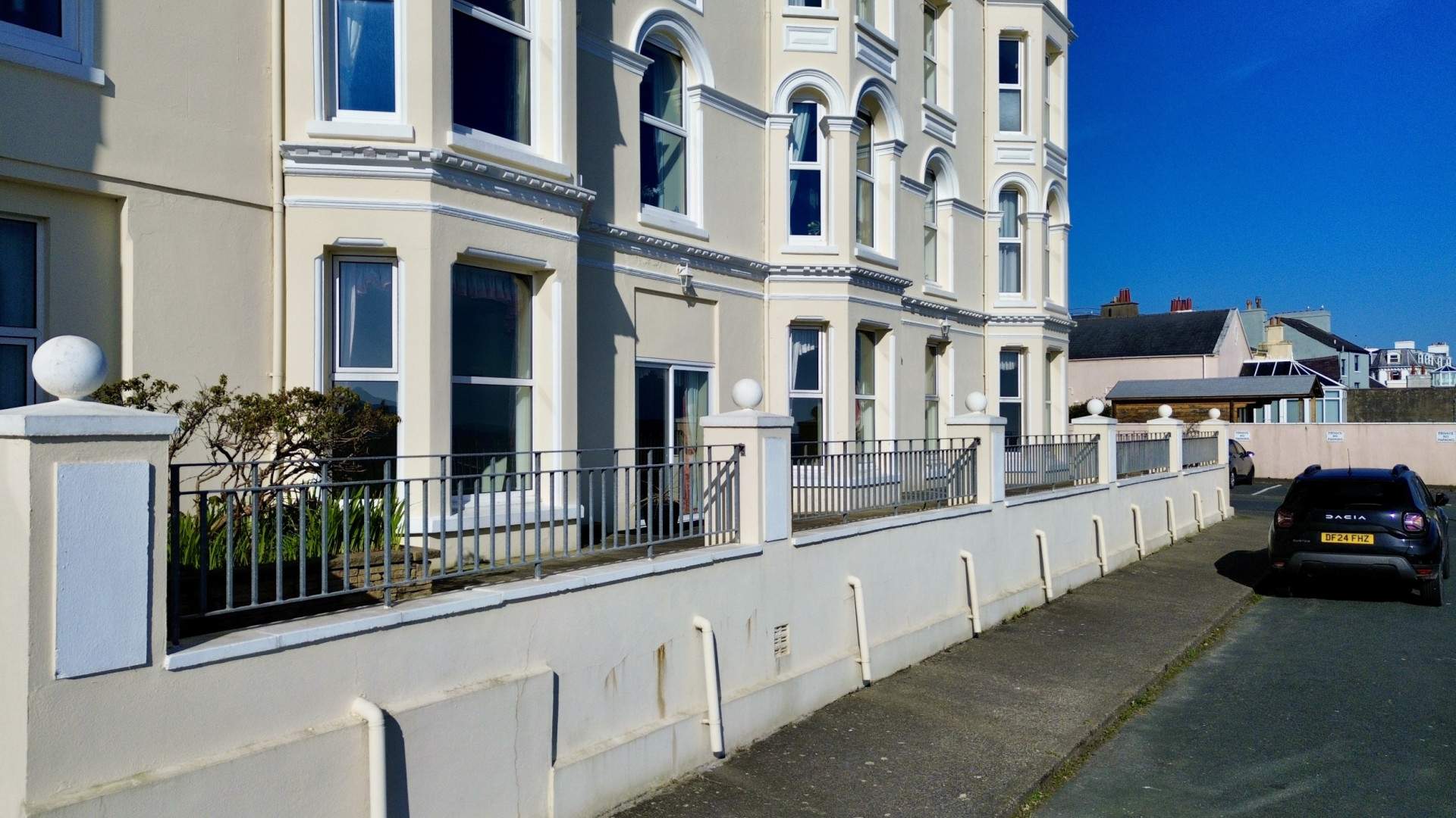 From Queens Promenade drive South towards the Iron Pier and continue up Stanley Mount East onto Ballure Road. Turn left after approx.150 yards into the Fountains which leads on to Ballure Promenade. The entrance to the communal area is on your right before you reach Ballure Promenade, with the outside parking space for apartment 21 clearly marked on your left.