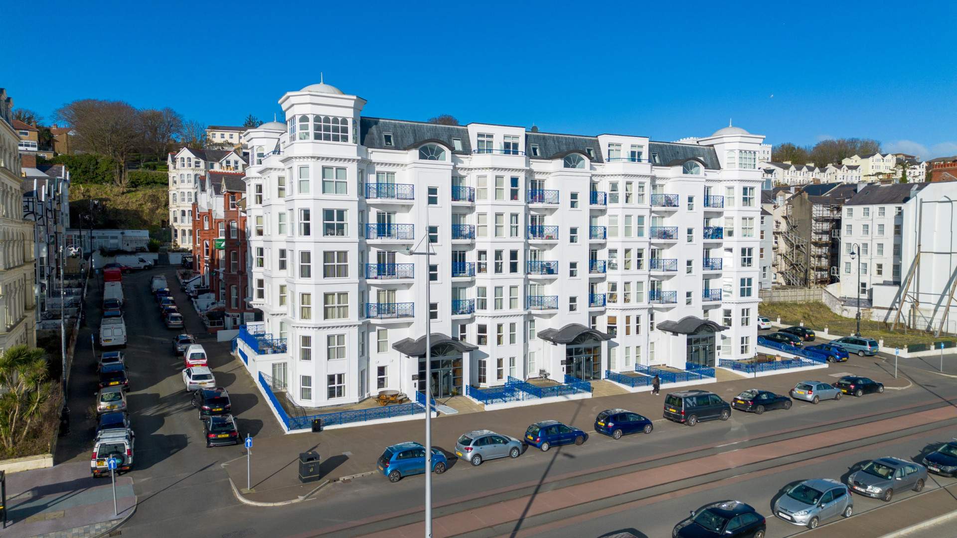 Travelling along Douglas Promenade in the direction of Onchan, continue straight on at Broadway and proceed for a short distance past the turning for Empress Drive where Empress Apartments can be found on the left hand side.