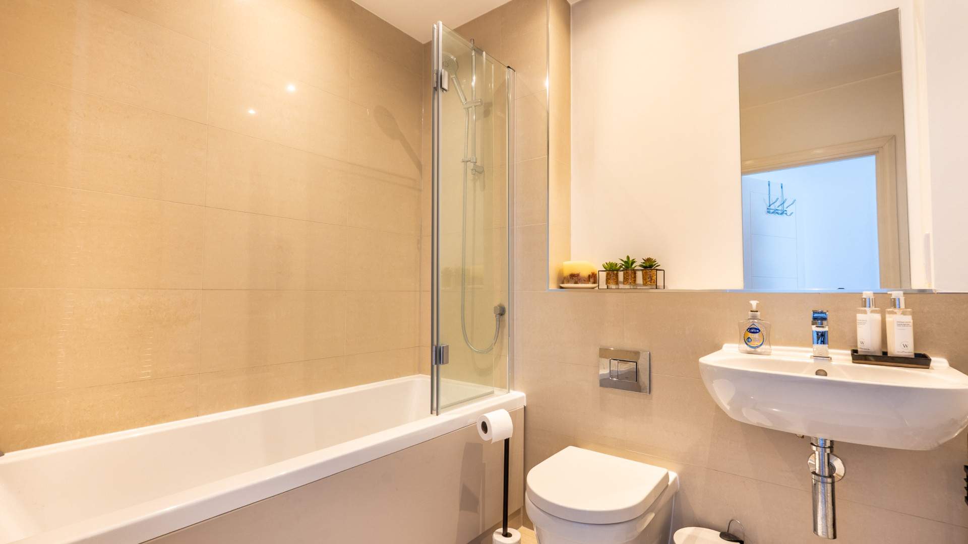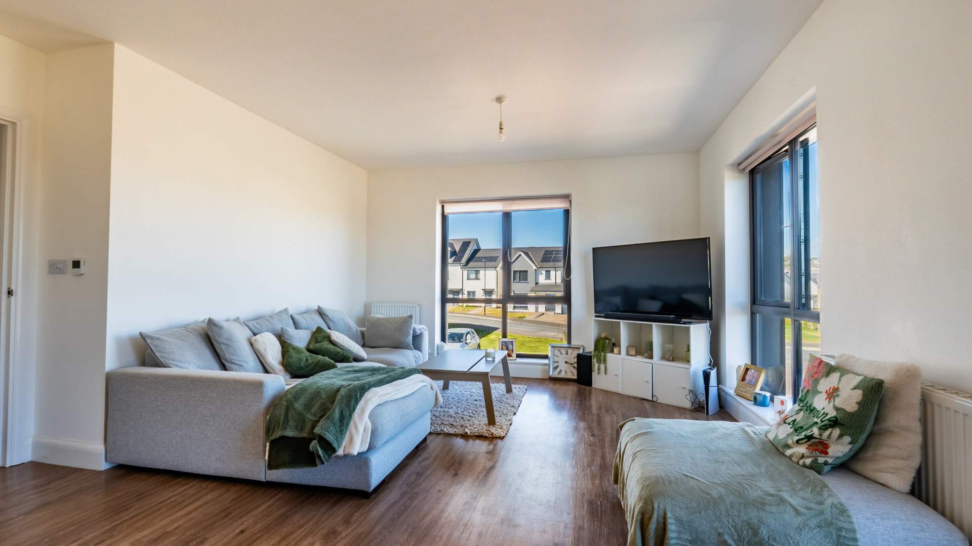 - Bedroom 1 (approx. 13’0 to Wardrobes x 8’9): Built-in mirrored wardrobes.