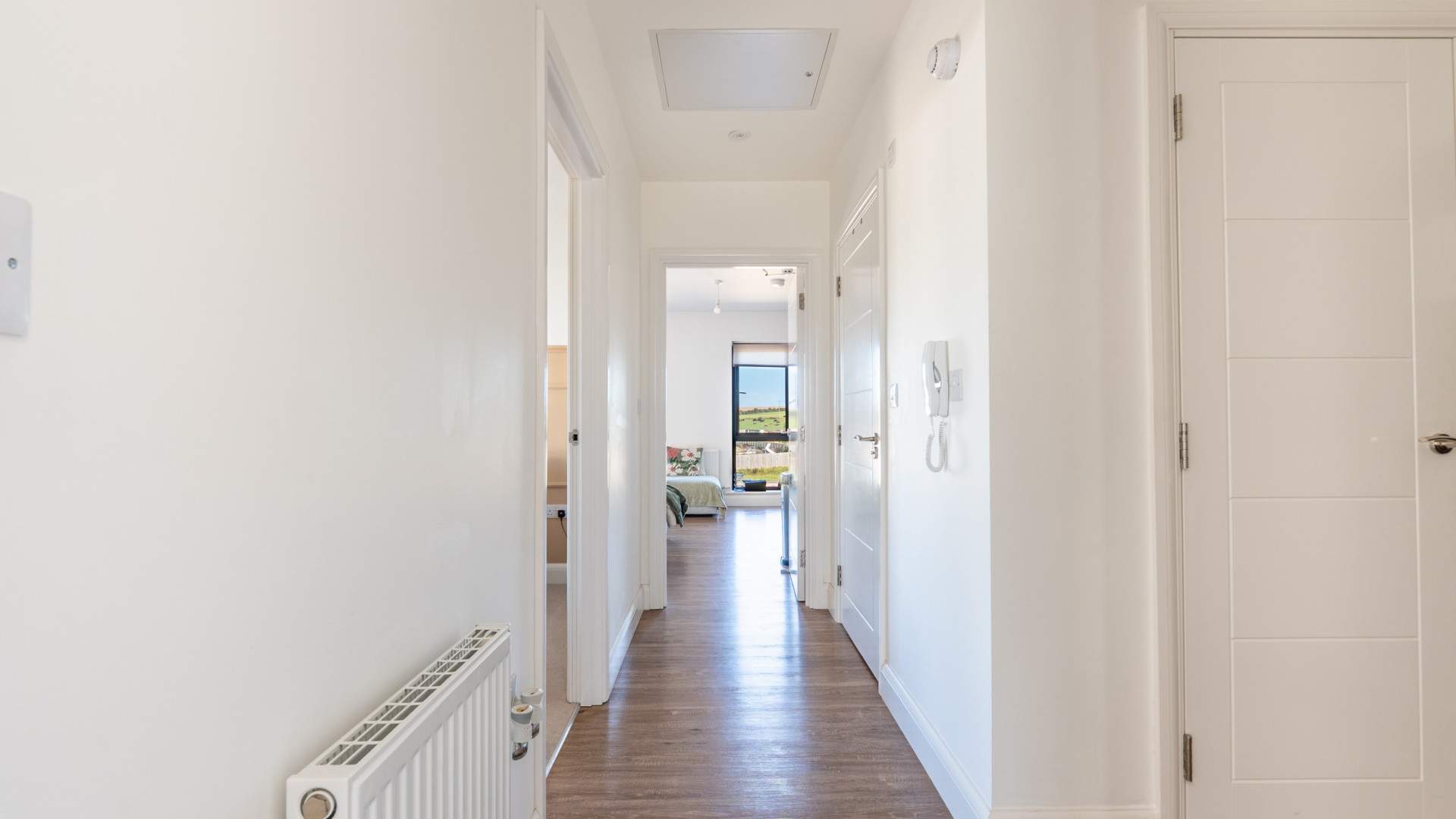 - Entrance Hallway (approx. 10’2 x 4’3): Two storage cupboards, housing the Zanussi washer/dryer and a Beko tumble dryer.