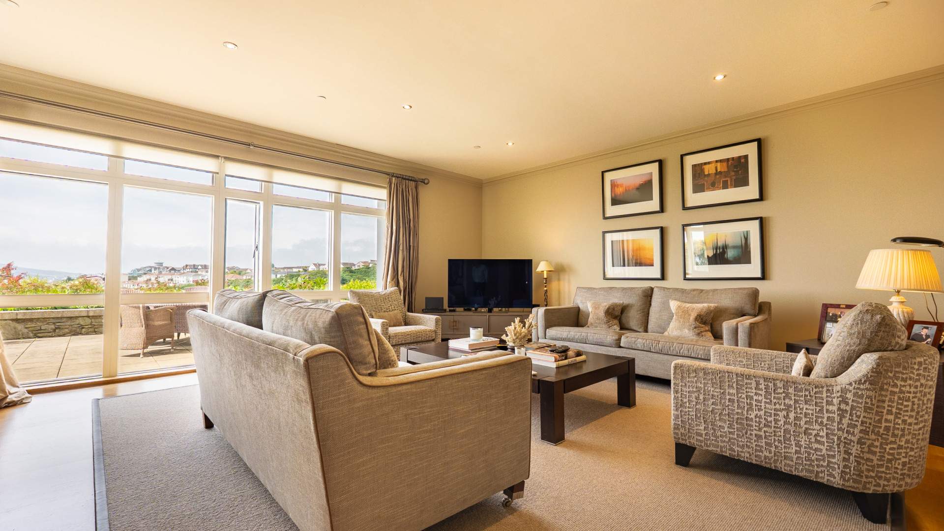 To the front of the property there is a private terrace providing ample outdoor living space, enjoying views out to sea across Douglas Bay and over to Douglas Head. Allocated parking space.