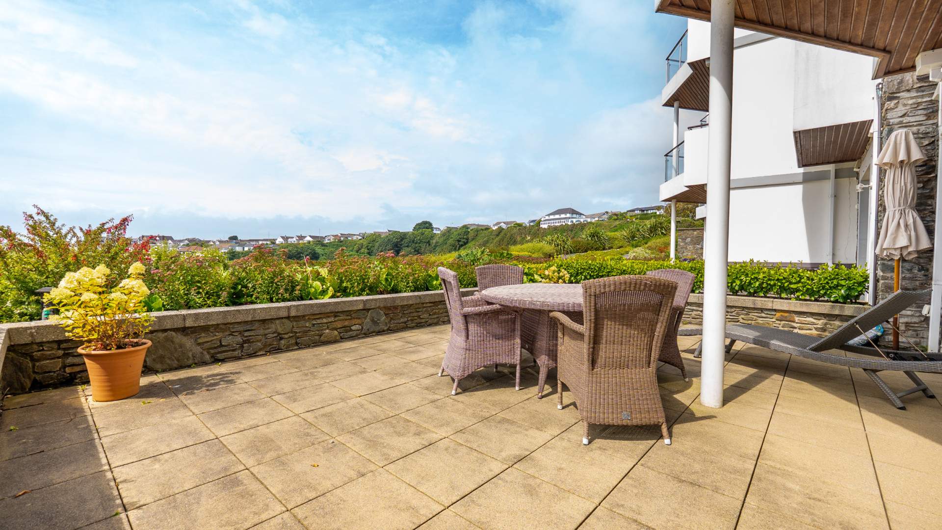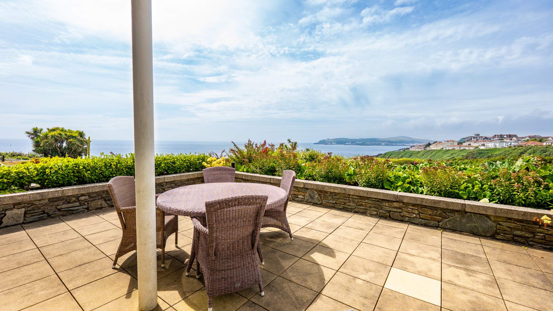 Purpose built ground floor 2 bed apartment situated in a sought after gated development. Private terrace providing sea views over Douglas Bay. Single garage & allocated parking space. Available from early December.