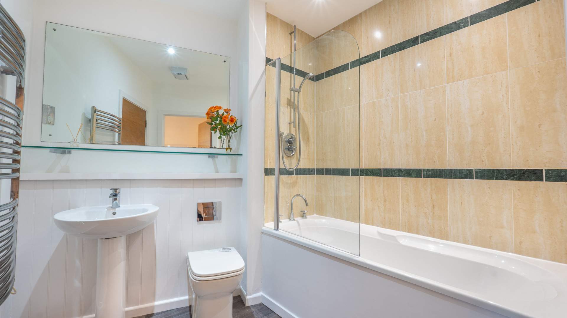 Fitted with a three piece suite comprising of a panel bath tub, pedestal wash hand basin and W.C.