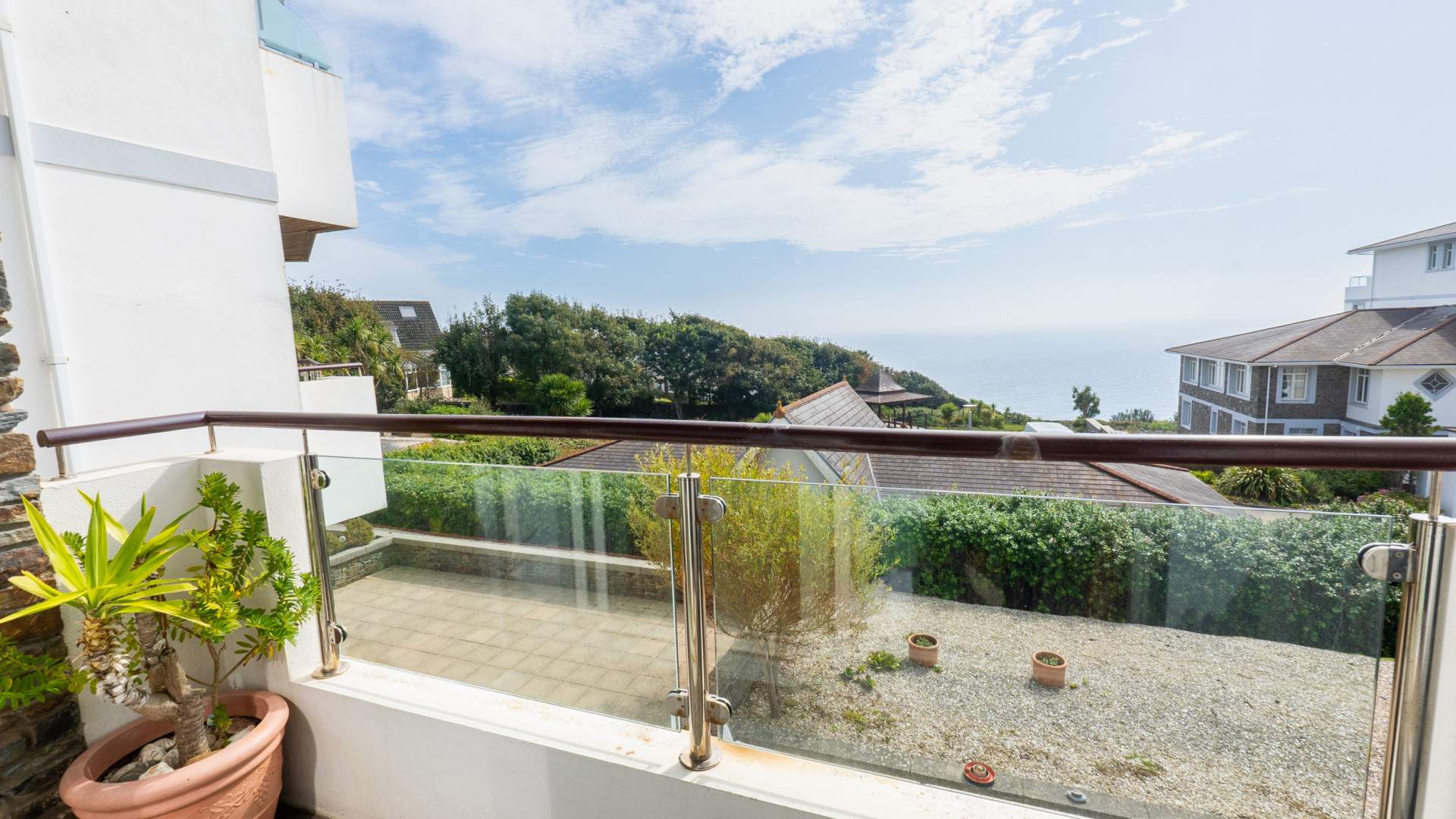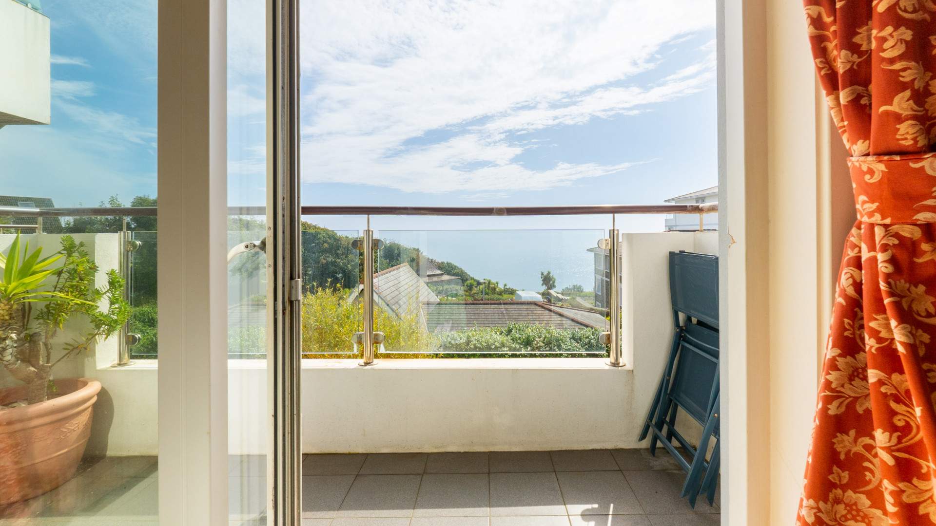 Glass balustrades set on dwarf walls. Stunning views out to sea and across Douglas Bay.