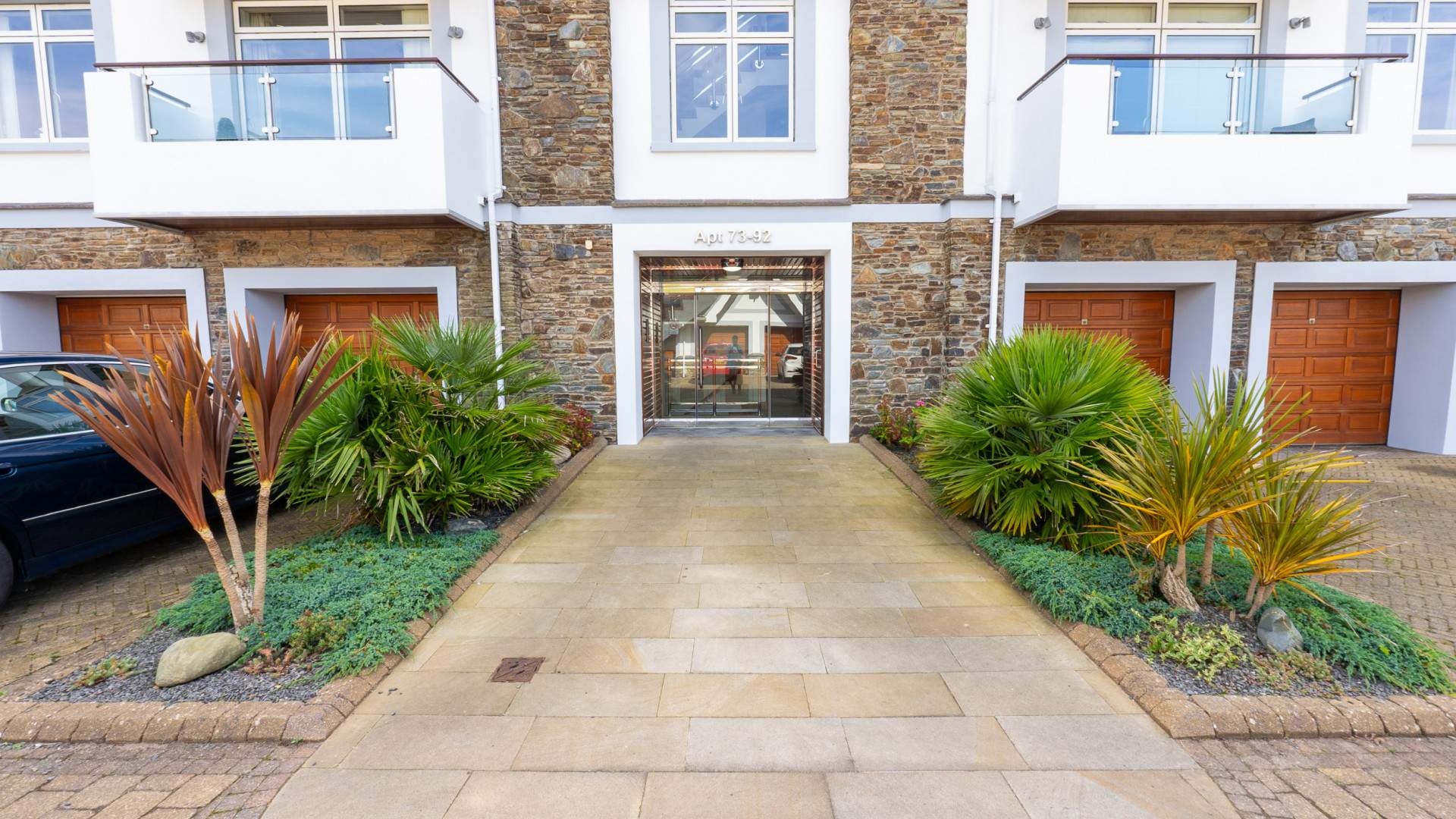 Travelling along Douglas Promenade in the direction of Onchan, proceed past Port Jack and onto King Edward Road. Continue past the entrances to Harbour Road and Howe Road and take the next right into the Majestic Apartments development where apartment eighty one can be found in the first block on the left hand side.