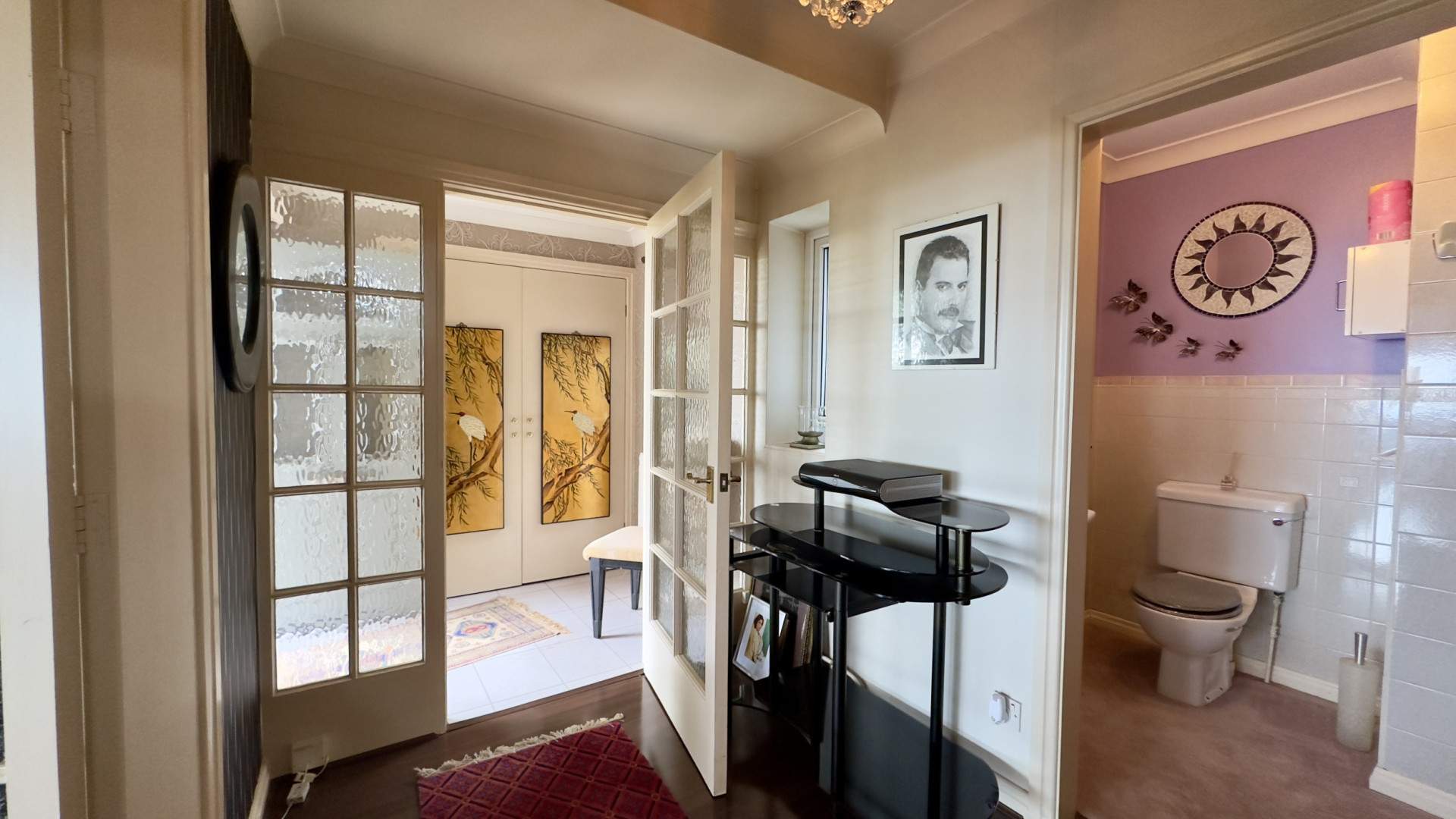 A wide hallway with a WC to your left, the spacious lounge to your right. Ahead of you is the kitchen and a staircase which accesses the ground floor of the property. The hallway is finished with a ceiling light and wood effect vinyl flooring.