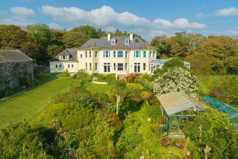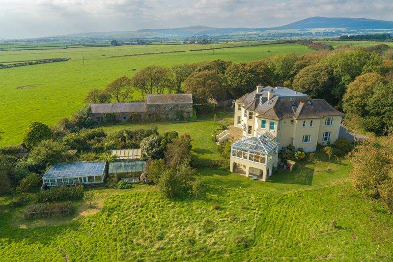 Few houses can offer as magnificent a setting as Cooil Cam which stands overlooking the beautiful Manx countryside and Langness Peninsula beyond, sitting in 7 acres. Approached via a private road of approximately ½ mile, the house is encircled by mature woodland, parkland gardens and agricultural grazing land. Cooil Cam is, first and foremost, a family home. Designed and constructed to the highest standard, with attention to detail at its very core. Whether it’s the orientation of the house, the beautiful ‘Chinese Room’ with its deep bay window and double French doors overlooking the courtyard garden, or the hand made Andrew Williamson kitchen, this impressive house provides a sanctuary amid a private estate offering a lifestyle choice that’s second to none. This is all apparent from the very moment of stepping across the threshold into the magnificent galleried entrance hall with bespoke handmade walnut helical staircase and custom designed glass chandelier commissioned from renowned Czech artist, designer and architect Borek Sipek. In summary the accommodation briefly comprises; Stunning galleried Entrance Hall, Four Reception Rooms, Kitchen, Dining Room, Conservatory, Study, Utility Room, Master Bedroom with en-suite Bathroom and Dressing Room, and four further Bedrooms each with en-suite facilities. To the second floor is a Games Room, two further Bedrooms, Bathroom and additional storage. Triple Garage, detached Plant Room, General Purpose Barn, Courtyard Garden, parkland with private woodlands, extensive lawned gardens and farmland with spectacular views across the south of the Island.