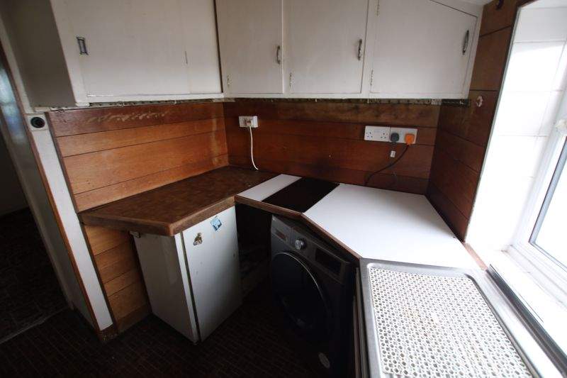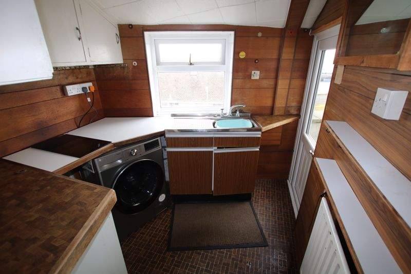 Fantastic sea views. Range of wall and base units with contrasting worktops, stainless steel sink unit, washing machine, fridge. Door to outside courtyard.