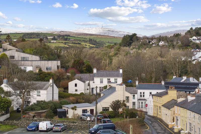 Travelling towards Laxey from Baldrine immediately after Fairy Cottage filling station turn right down Old Laxey Hill, the property can be clearly identified by our For Sale Board on the left hand side.