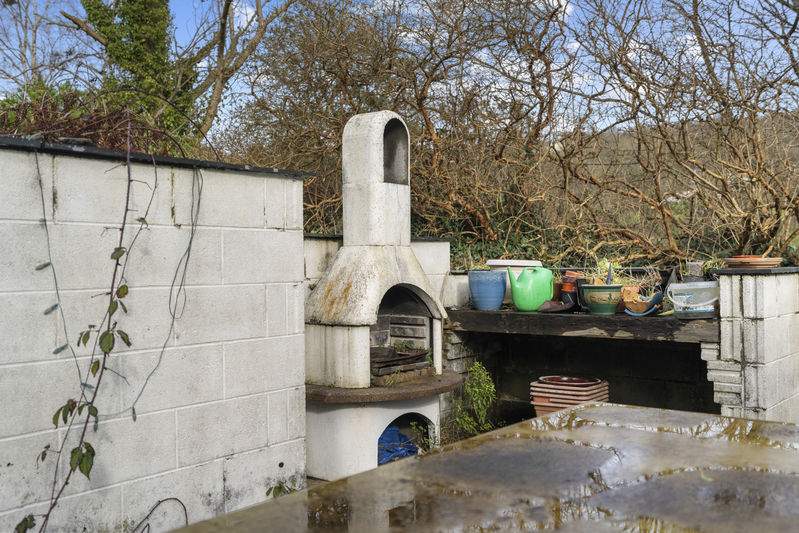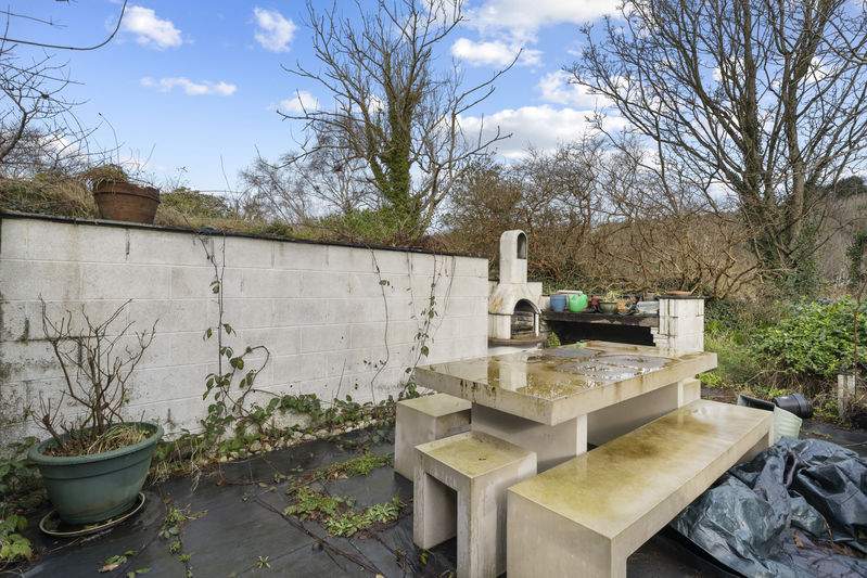 The entrance gate leads onto a grassed parking area to the front of the property. There is a large rear garden with mature planting and trees to the rear offering privacy. Large paved patio to rear with greenhouse. Concrete table and chairs and and outside cooking facilities.