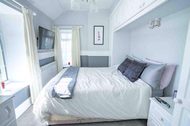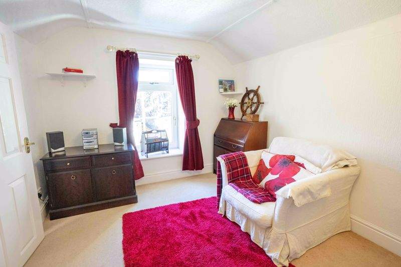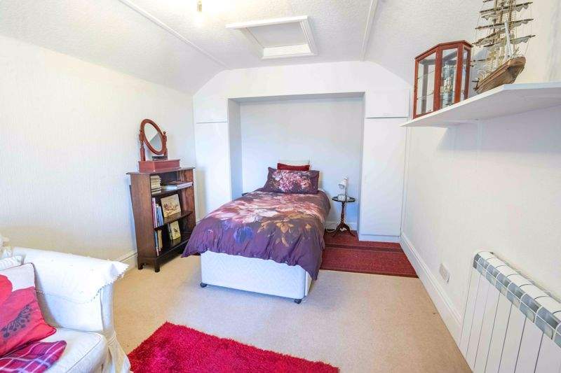 Spacious double room with dual aspect windows giving spectacular views over the hills and coastline. Good range of fitted bedroom furniture. Built-in airing cupboard. Loft access with wooden ladder.