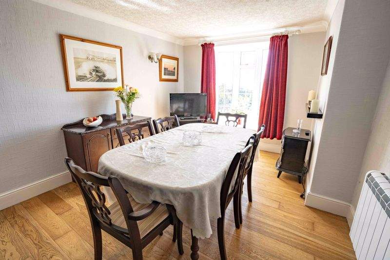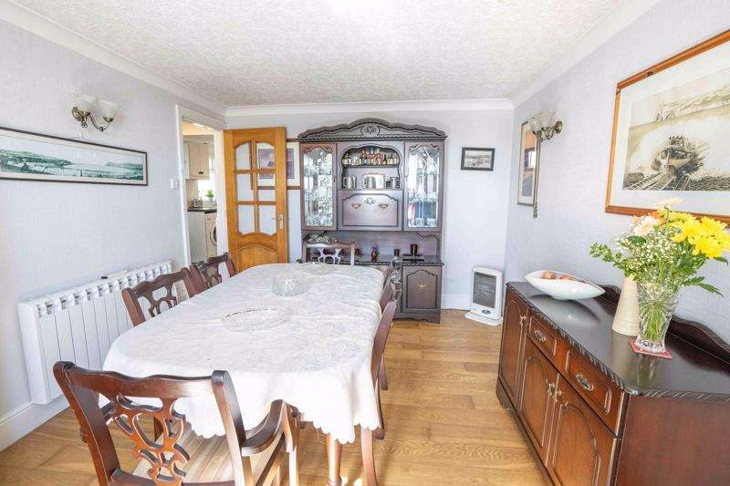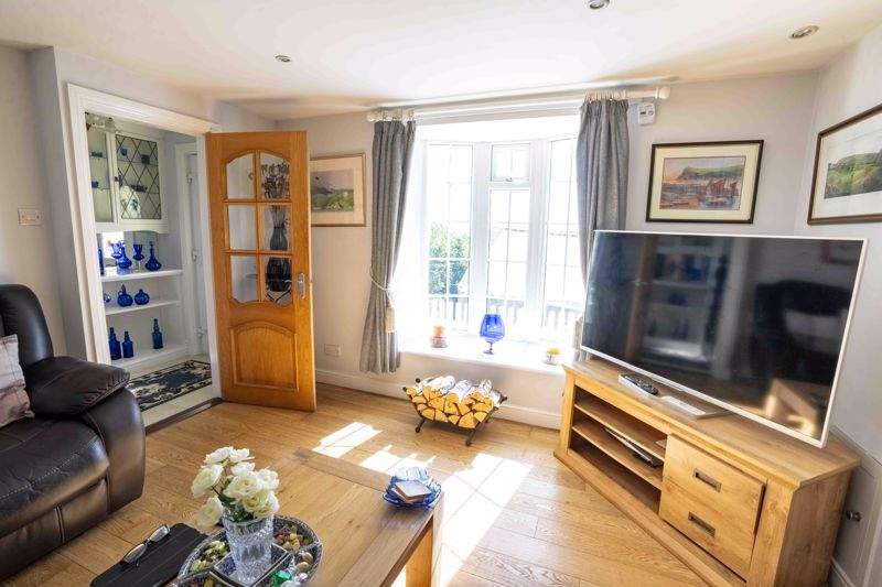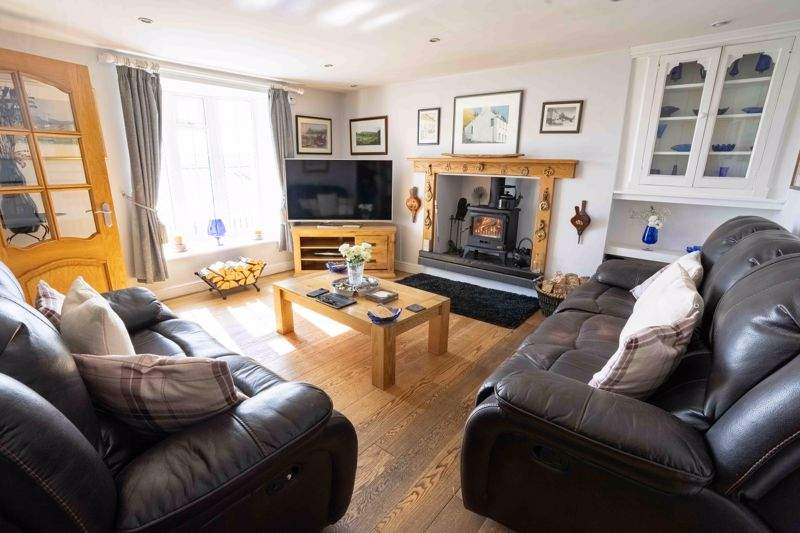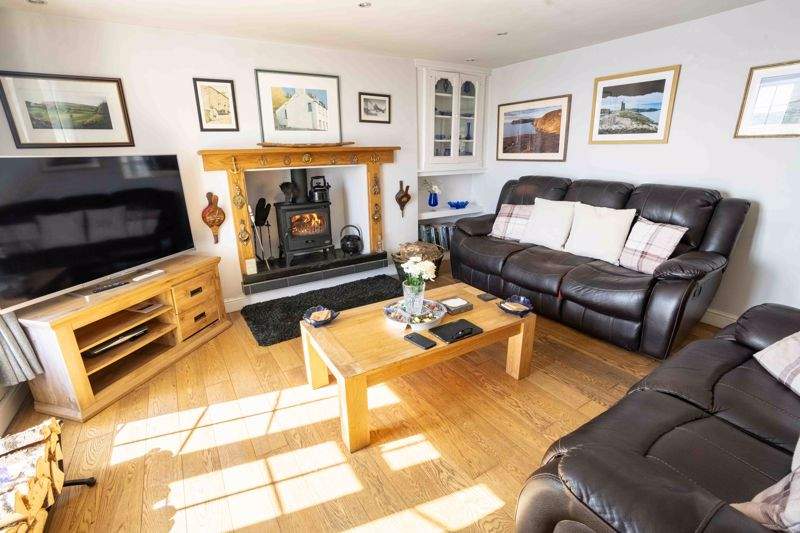 Charming room with log burning stove set in feature fireplace. Bay window offering wonderful views to the front across Rowany Golf Course and towards the coastline.