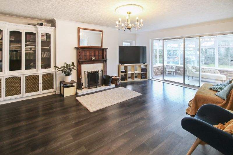 Generously proportioned room with dual aspect windows. Baxi working open grate fireplace. Sliding patio doors to: