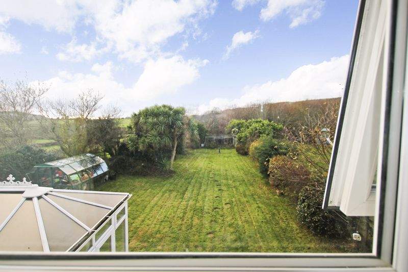 Spacious room with a good range of fitted beech-fronted bedroom furniture with dressing table. Nice outlook overlooking the private rear garden with stunning views of the golf course and towards Bradda Head.