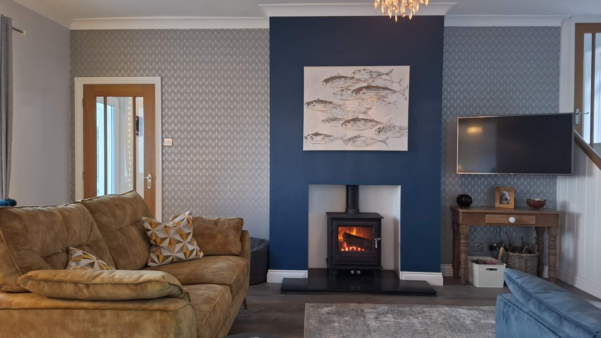 A cosy space with a uPVC double glazed window looking on to the front aspect and views of Ramsey bay. At the rear of the lounge is a set of uPVC double glazed doors opening on to the rear aspect. Next to the doors are three steps leading up to the staircase accessing the first floor. In the middle of the room is a multi-fuel stove, on the opposite side of the stove is access to the snug room. The room has a ceiling light and is finished with the vinyl flooring throughout.