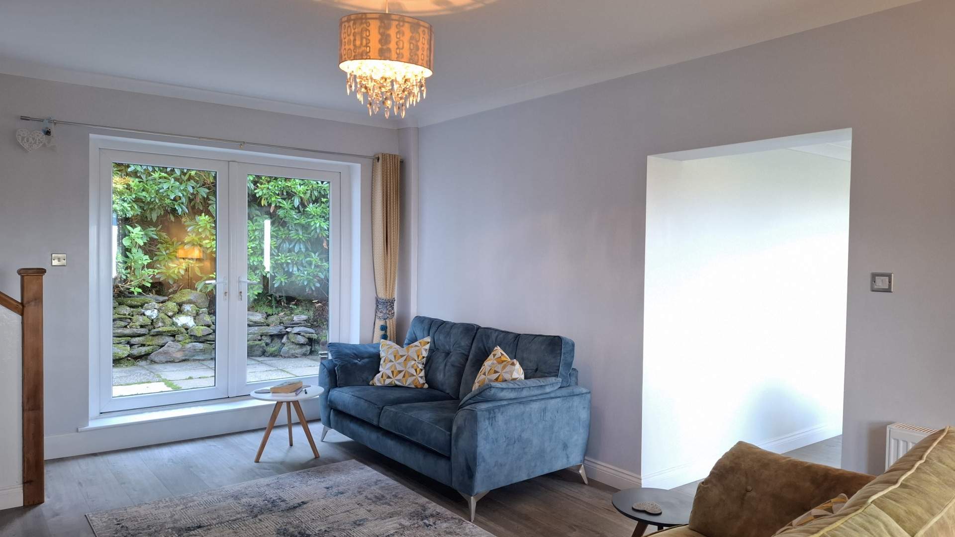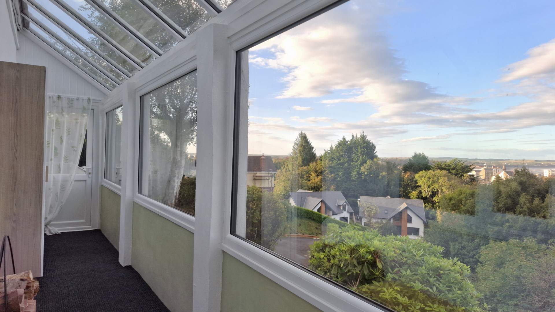 Entering through a uPVC double glazed door, with a frosted window with a glass roof and three large uPVC double glazed windows providing wonderful views across Ramsey bay to Bride. At the far end of the porch is a further uPVC double glazed door with window providing access to the front aspect of the property. On your left is a uPVC double glazed door with a full pane of glass providing access into the house. The porch is finished with carpeted flooring throughout.